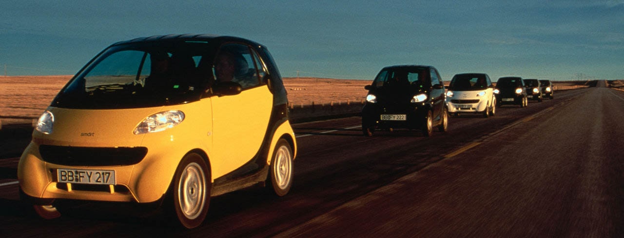Smart MCC. Ecco un'altra piccoletta che “non poteva essere una Mercedes”, ma in realtà lo era. La nuova citycar fu la felice intuizione dell'azienda tedesca in partenariato con l'estrosa casa orologiera svizzera Swatch. La sigla che distingueva la prima serie, MCC, era il nocciolo della questione: Micro Compact Car, un veicolo unicellulare concepito in risposta al traffico cittadino sempre più congestionato e caotico. Intelligente di nome e di fatto, perché era la risposta al dato statistico secondo cui in macchina ci si sposta quasi sempre da soli. Il Brabus tre cilindri turbo da 600 cc riduceva consumi ed emissioni. E poi la Smart s'infilava ovunque sostituendo il parcheggio di stile cubista, o più spesso surrealista, con quello puntinista. Similitudini pittoriche a parte, la Smart guardava avanti. Solo le prime volte si restava un po' basiti volgendosi indietro: dov'era finito il resto dell'auto, con i 20 milioni di lire che costava?