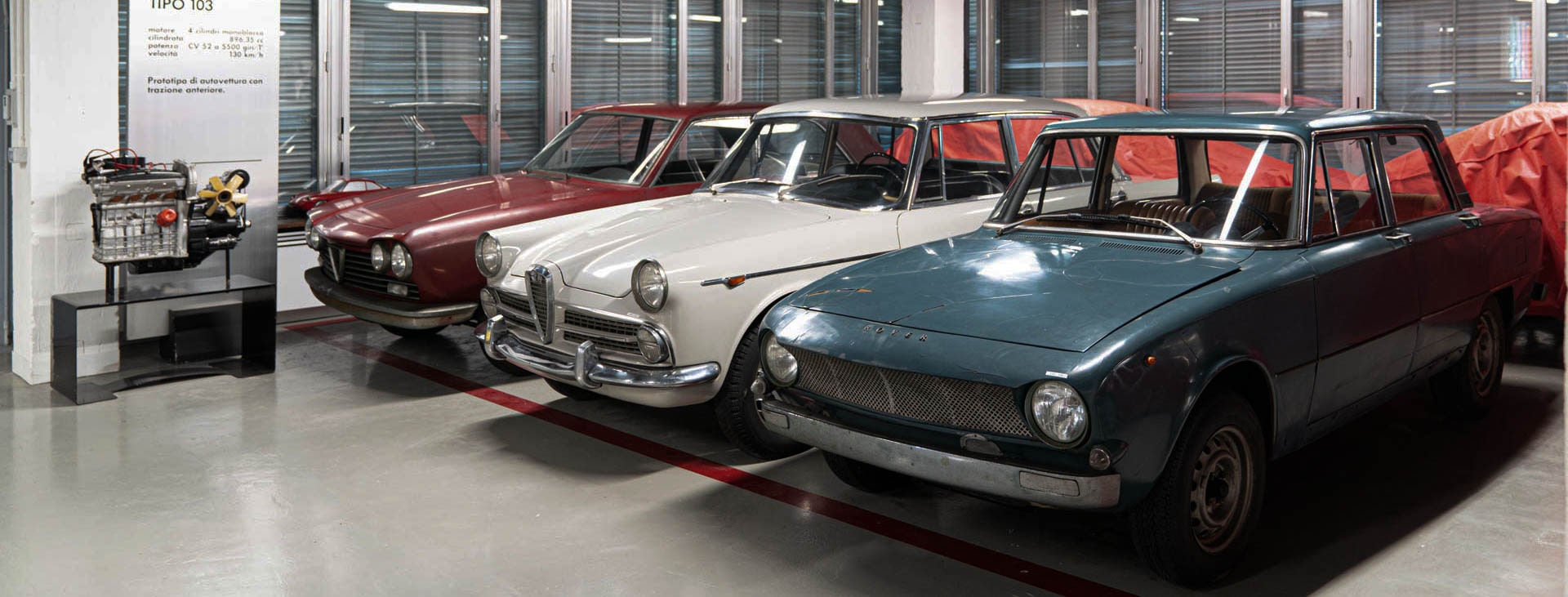 Emozione allo stato puro. Passeggiando in questa area, pure un vecchio Alfista come chi scrive è ancora in grado di emozionarsi, eccome. Colpo al cuore quando “riappare” l’Alfetta del raid “Capo Nord-Capo Sud” (1973). La vettura beneficia solo di una preparazione per affrontare aree climatiche agli antipodi e terreni “selvaggi”. Equipaggio del raid: Baghetti, Taroni, Galliani e 500 kg di equipaggiamento. Durata: 29 giorni e 14 ore, per 26.057 km (880,8 km di media al giorno). Inconvenienti tecnici: solo un ammortizzatore e considerando che l’Alfetta non è una fuoristrada, è stata assolutamente perfetta e affidabile. Quando ha terminato il raid la vettura era ancora in garanzia., Ma non c’è tempo per fermarsi davanti a un gioiello, ce ne sono davvero tanti, come la 164 Pro-Car (1988): il primo V10 della storia delle competizioni equipaggia questa berlina (solo nella veste esterna è una normalissima 164, addirittura “Twin Spark”) ideata per prendere parte alle gare della categoria Silhouette. La vettura non ha mai corso perché la categoria non ha mai preso il via. Ha girato solo a Monza con Riccardo Patrese. Il telaio in carbonio è stato realizzato dalla Brabham. Giusto il tempo di voltarsi ed ecco la 1750 prototipo (metà anni 60): il prototipo camuffato della berlina post-Giulia ha sul muso la scritta “Rover”, per depistare la stampa specializzata. L’estetica è comunque ben celata. E poi, riecco la Protéo (1991): presentata al Salone di Ginevra del 1991, è la prima concept che inaugura la nuova struttura del Centro Stile ad Arese. Realizzata sulla meccanica della 164: V6 24v, trazione integrale e quattro ruote sterzanti. È dotata di un tetto retrattile in vetro che la trasforma da coupé a spider, anticipando la Mercedes-Benz SLK. Per inciso: quando il tetto è aperto, non vincola la capacità del bagagliaio. Lo stile del muso offre un’anticipazione della GTV/Spider 916. Applausi a scena aperta anche per la Sprint 6C (1983 circa): è un prototipo (il secondo) dell’Alfasud Sprint dotata del V6 da 2,5 litri collocato in posizione centrale (longitudinale). Si dice che il pianale della vettura fosse conformato per ospitare gli organi di trasmissioni per una versione a trazione integrale.