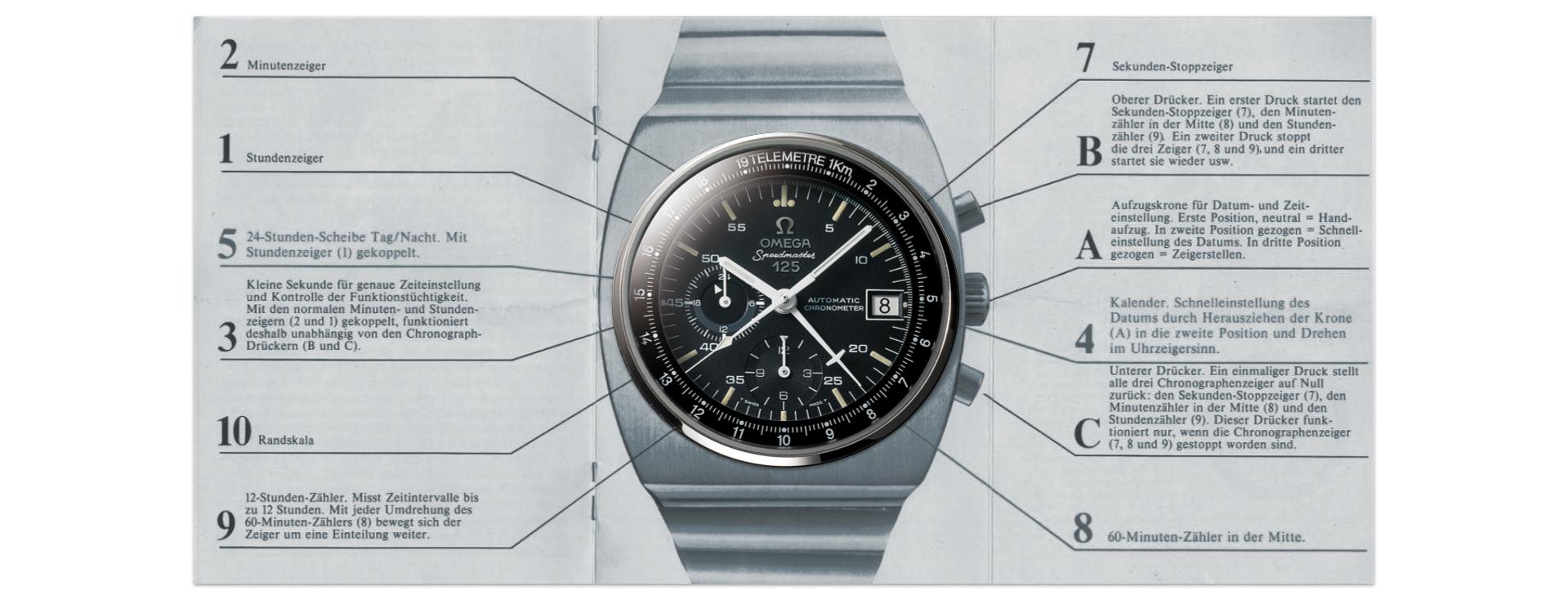 Prodotto nel 1973 per celebrare i 125 anni della Omega (casa fondata nel 1848), anche questa variante del più noto Speedmaster moonwatch è stata una pietra miliare nel campo dell’orologeria di precisione. Perché col suo movimento automatico da 22 rubini (con una riserva di carica di quasi due giorni), è stato tra i primi orologi a essere certificati dalla neonata COSC (Contrôle Officiel Suisse des Chronomètres). Una curiosità: pensato per essere il modello di punta della casa, quando fu lanciato sul mercato americano il 125 veniva venduto quasi al doppio del moonwatch.