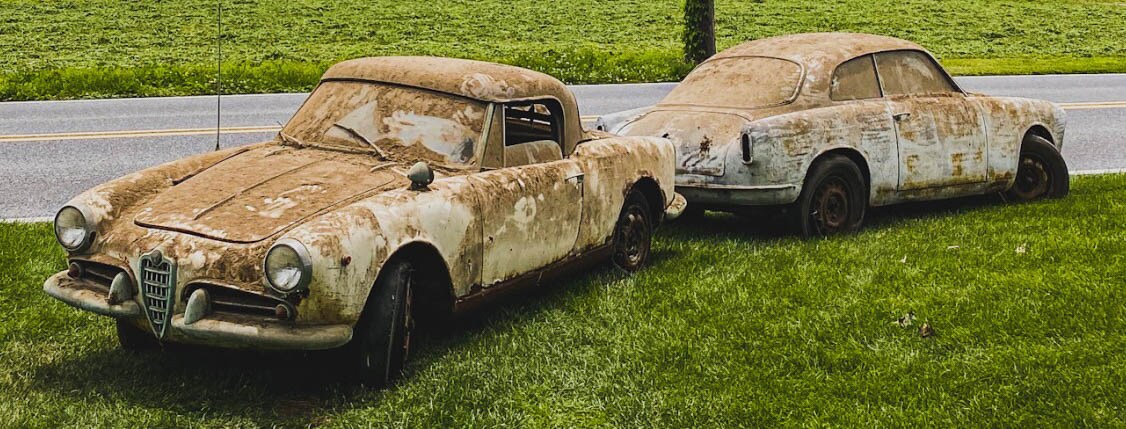 Sepolte vive. La storia è il classico caso di sepoltura prematura, in attesa di resurrezione. Il proprietario originale della piccola collezione di Alfa Romeo era passato a miglior vita 40 anni fa e l’erede, tutt’altro che appassionato, si era limitato a darle riparo sotto un tetto di assi di legno, in attesa di decidere cosa farne. Durante tutto questo tempo, le cinque Alfa Romeo sono state lasciate a marcire. Ignare di Internet, del Nine-Eleven, del mondo che cambiava. Potete immaginare quindi la piacevole sorpresa quando gli scout si sono ritrovati al cospetto di una Giulia del 1967, una 1750 Berlina del 1969 e un’Alfetta GT del ’76. Tutte bianche, l’una accanto all’altra in condizioni di abbandono, ma quasi complete. La scoperta migliore però è avvenuta in un prefabbricato di compensato proprio accanto: il vero tesoretto era nascosto lì dentro. Una coppia di Giulietta, una Sprint e una Spider, entrambe del 1959 e con targa della California, attraversarono il Grande Paese più di 40 anni fa. Terminato il viaggio, la chiavetta dell’accensione non fu più girata.