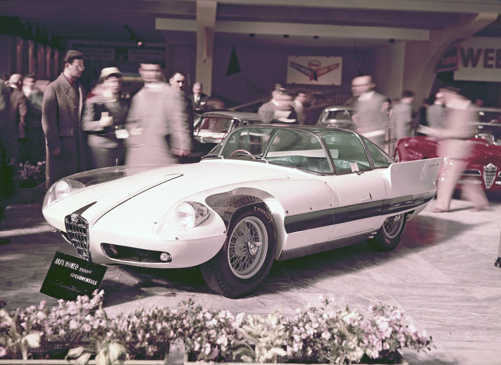 Tra il 1956 e il 1960 Pininfarina realizzò le quattro Alfa Romeo Superflow, tutte sullo stesso telaio AR1361.00128 con motore AR1311.00508 (6C 3000 CM), originariamente una vettura da competizione carrozzata da Colli. Il progetto fu un laboratorio di sperimentazione stilistica e tecnica, in cui l’automobile diventava un oggetto di ricerca avanzata sul design, sull’aerodinamica e sull’uso di materiali innovativi. La vettura prescelta fu un modello di pregio, la già rarissima 6C Competizione Maggiorato, con telaio tubolare e motore da 3500 cm³. Dopo la breve e sfortunata carriera agonistica, le vetture vennero impiegate per test o carrozzate per facoltosi clienti. Una finì in Pininfarina, dove venne usata per studi di forma.