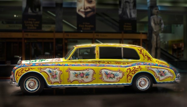 Lennon però si stancò subito dell’elegante color nero opaco Valentines Black e poco dopo affidò all’artista Steve Weaver l’incarico di personalizzare l’auto con i motivi floreali ispirati al carro da zingari che Lennon teneva nel suo giardino. Una scelta che non mancò di indignare molti tradizionalisti dell’epoca ma che rese celebre per sempre questa vettura. I Beatles la utilizzeranno per le loro trasferte dal 1966 al 1969, per poi trasferirla in Usa dove sarà utilizzata anche da diverse rock star come i Rolling Stones, i Moody Blues e Bob Dylan.
