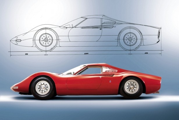 Nel mese di maggio 1965 alla Pininfarina erano già pronti i disegni e i dati tecnici per il primo prototipo della futura Dino GT costruita a Maranello. Un giovane ma molto volitivo Sergio Pininfarina si era lanciato nella non facile impresa di convincere Enzo Ferrari del successo che avrebbe ottenuto un modello a motore centrale. Per vincere le resistenze del Drake, il figlio di "Pinin" aveva portato avanti in autonomia la sua battaglia e, ottenuto un telaio 206 S da corsa, numero di serie 0840, aveva affidato ad Aldo Brovarone il compito di immaginare una prima soluzione stilistica per una piccola GT con motore V6 posteriore costruita alla corte del Commendatore.