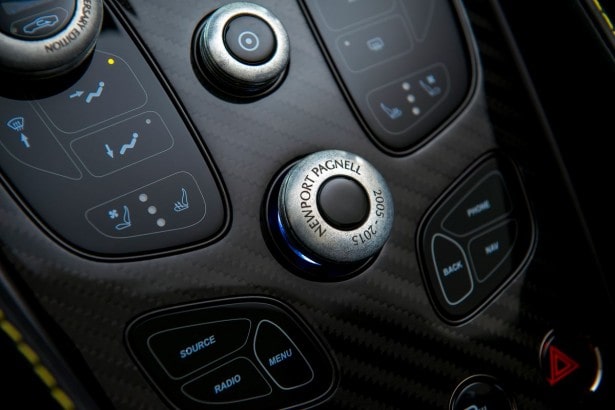 Sulla plancia di ognuno dei soli sei esemplari di Aston Martin Works 60th Anniversary Vanquish sono montate manopole in metallo realizzate con pistoni di modelli del passato prodotti a Newport Pagnell.