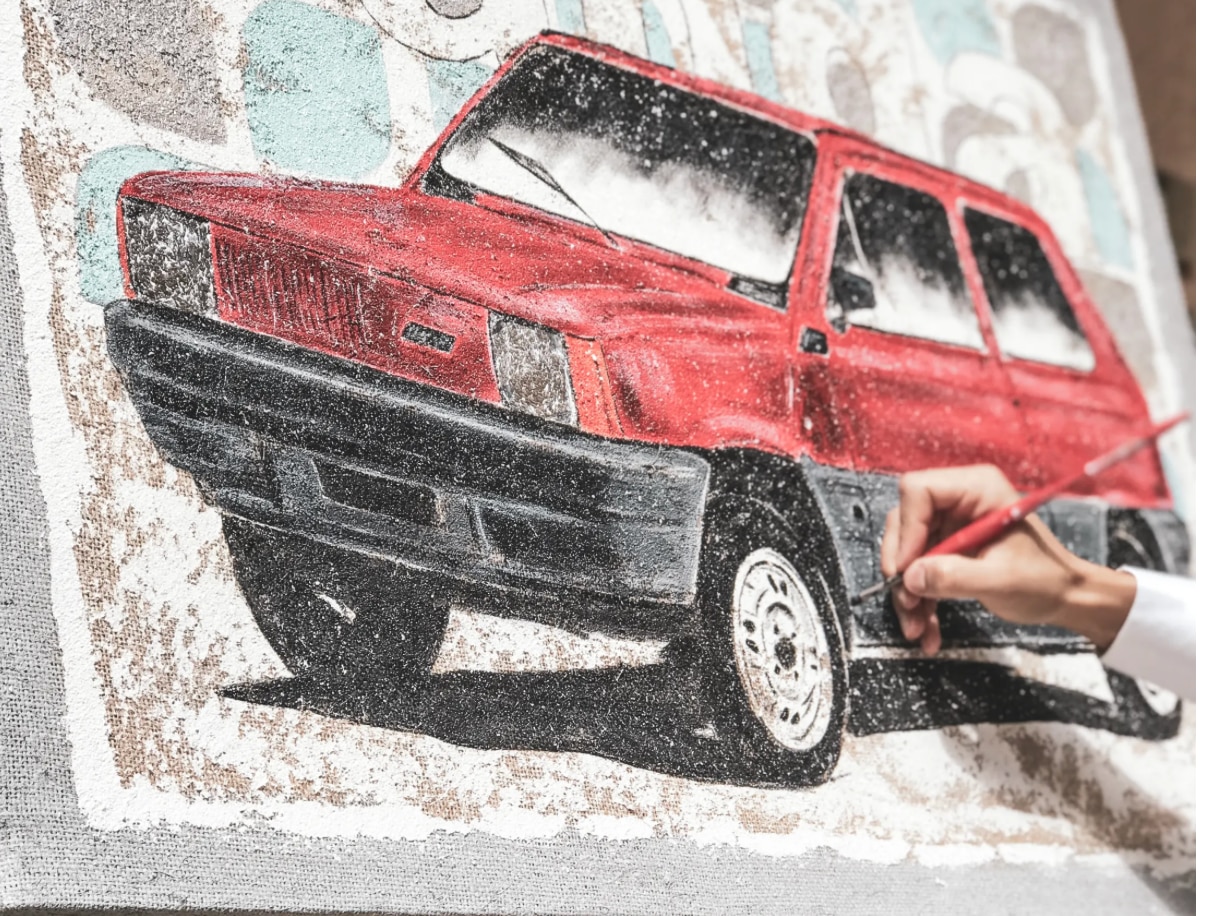 In un panorama dominato da artisti stranieri iniziamo con un giovane italiano, Stefano Berardino, che non nasconde la sua passione per i marchi nazionali. Fiat, Lancia, Alfa Romeo, con i modelli classici reinterpretati in chiave pop utilizzando una tecnica – quella della spatola su tela – ereditata dal padre, Nicola Berardino. La superficie viene anche trattata con la sabbia per creare delle texture molto particolari (funzionali a rievocare atmosfere vintage), per le quali l’artista sfrutta anche colori presenti nei listini degli anni 50 e 60 con una particolare predilezione per gli accostamenti tra azzurro e rosso. Le sue opere si possono trovare tutte nel suo sito internet.