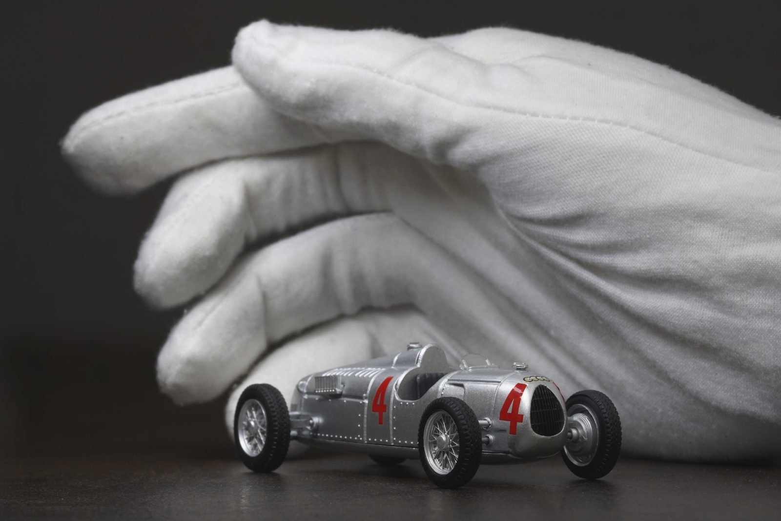 L’Auto Union Type C appare più simile a un proiettile che a un’auto da corsa, grazie alle linee affusolate, al motore centrale (chicca assoluta per l'epoca) e alla coda rastremata. La verniciatura argento risulta ben eseguita e valorizza le forme aerodinamiche. Dettagli come le griglie di raffreddamento e i rivetti in rilievo sono corretti e ben realizzati. Anche gli scarichi, pur nelle dimensioni ridotte, offrono un buon livello di dettaglio.