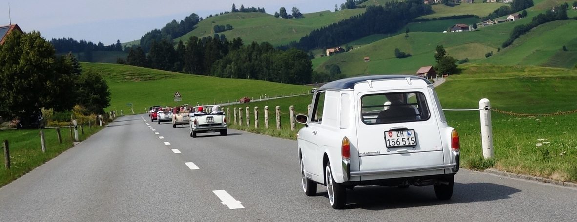 Trasformabile, cabriolet, berlina, panoramica: c'erano tutti i modelli di Bianchina al raduno internazionale delle piccole Autobianchi che si è svolto dall'11 al 16 luglio in Svizzera, Austria e Germania. Si è fatto notare anche un bell’esemplare di furgoncino “Tetto basso”, con un raro volante bianco originale. In totale hanno partecipato una ventina di vetture, provenienti anche dalle delegazioni svizzera e tedesca del Bianchina Club, nato nel 1996 e federato Asi.
