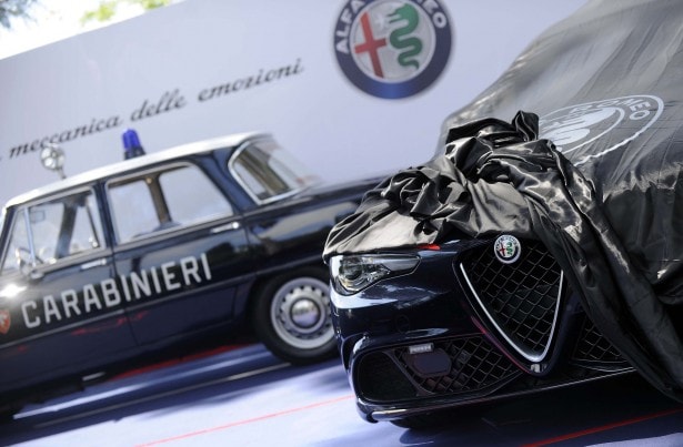 510 CV, da 0 a 100 km/h in 3,9 secondi, 307 orari di punta massima. Bei numeri, per quella che sarà l’Alfa Romeo di serie più veloce di tutti i tempi. Ma la presentazione di questa nuova Giulia è stata anche l’occasione per ricordare che il sodalizio tra la Benemerita e l’Alfa Romeo è di lunghissima data: risale al 1953 l’entrata in servizio della fuoristrada AR51 “Matta” (120 esemplari per i Carabinieri). Seguì la Giulia TI dal 1963 al 1967 (1500 esemplari in divisa, allora grigio-verde, per la Benemerita), poi la Giulia Super (oltre 2000 unità dal 1969 al 1972).
