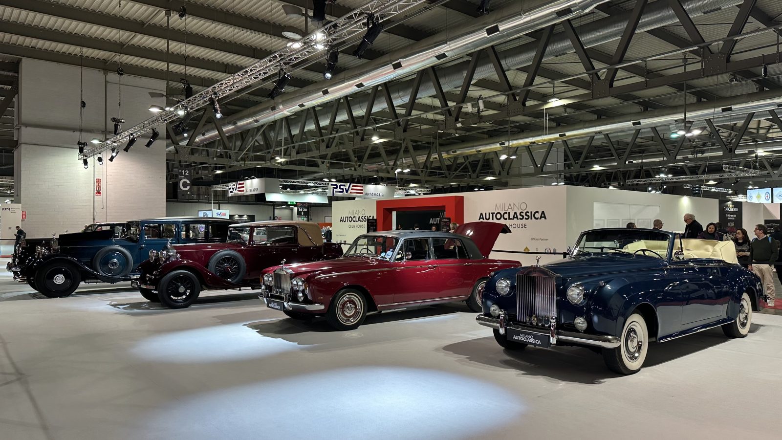 La prima protagonista è la Phantom del 1925, un'auto di lusso iconica, erede della Silver Ghost. Fu prodotta sia nel Regno Unito che negli Stati Uniti, ma presentava differenze tecniche tra i due mercati, come la cilindrata del motore, la trasmissione e il passo. La 20/25 HP, prodotta tra il 1929 e il 1936, è stata un modello di grande successo che ha aiutato l'azienda a superare la Grande Depressione. Erede della Twenty, era equipaggiata con un 3.6 litri e mirava a facoltosi clienti con autista. Era apprezzata per la sua maggiore potenza rispetto al modello precedente, l'eleganza delle carrozzerie artigianali e l'introduzione del cambio sincronizzato e dei freni idraulici. La Silver Wraith è stata la prima vettura prodotta dalla casa britannica dopo la Seconda Guerra Mondiale, tra il 1946 e il 1959. Era venduta come un telaio con motore, su cui i clienti potevano far installare carrozzerie personalizzate, rendendola un'auto di lusso iconica e distinta. La sua produzione è stata interrotta quando è stata sostituita dalla Silver Shadow II. La Silver Cloud, prodotta dal 1955 al 1959, incarna l'eleganza britannica del dopoguerra, sostituendo il Silver Dawn con un telaio più rigido e una carrozzeria in acciaio e alluminio. Si distingue per il suo sei in linea da 4887 cm³, il cambio automatico a quattro rapporti della General Motors e il lusso artigianale, con interni in pelle e legno. La Silver Cloud II Drophead Coupé, prodotta dal 1959 al 1962,è un'elegante cabriolet di lusso che rappresenta l'evoluzione della serie Silver Cloud. Caratterizzata dal nuovo V8 da 6.2 litri, la versione Drophead (carrozzata Mulliner) offriva maggiori prestazioni rispetto al modello precedente, pur mantenendo il lusso e la maestria artigianale per cui il marchio è famoso.