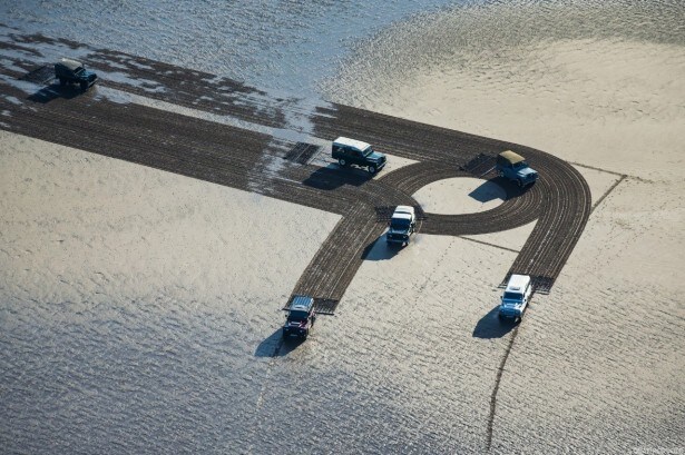 Le sei vetture scelte per portare a compimento la silhuette avevano l'obiettivo di rappresentare il meglio della storia e l'evoluzione del modello: oltre a un esemplare per ciascuna delle tre serie (la seconda vedeva al volante i figli dei Wilks), c'erano una Ninety degli anni 80, una serie 90 Hard Top e una serie 110. La sagoma tracciata sulla sabbia misurava in tutto 4,52 km, e ha resistito solo pochi minuti prima di essere cancellata dalla marea.