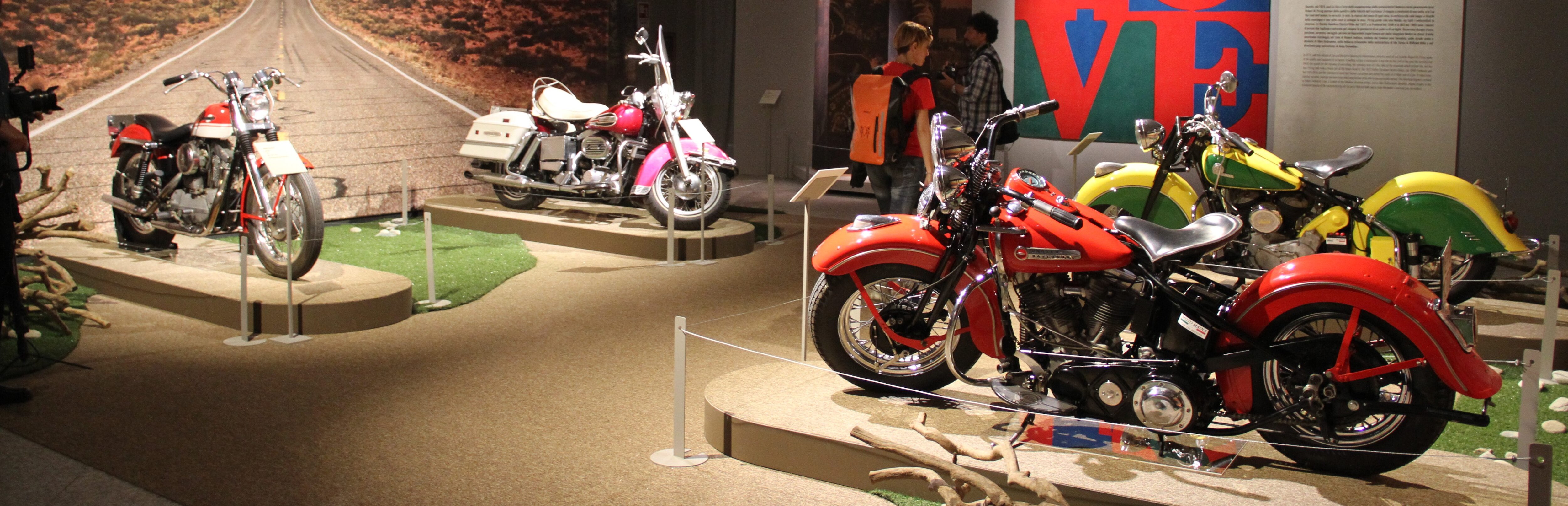 American style. Nella settima sezione, si esalta il viaggio a cavalcioni di una moto, soprattutto negli Stati Uniti, come on the road dell’anima, alla ricerca del senso di ogni cosa, con la certezza che, citando Robert M. Pirsig, “solo lungo i fianchi della montagna e non sulla cima si sviluppi la vita”. Se Pirsig guidò sempre e solo una BMW, esposte in questa sezione ci sono naturalmente solo Harley-Davidson e Indian, mentre sulle pareti spiccano i dipinti di Robert Indiana, Glen Rubsamen e Ida Tursic & Wilfred Mille