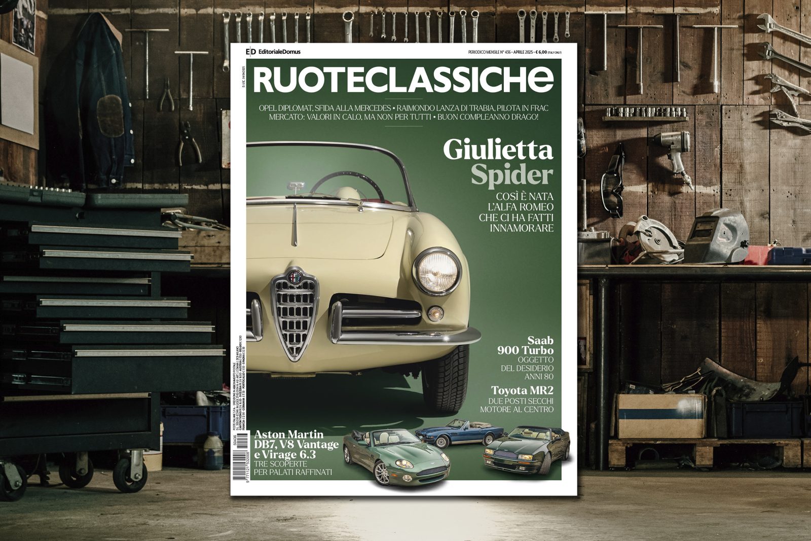 Nel numero di aprile di Ruoteclassiche, oggi in edicola a 6 euro -oppurea 11,90 euro insieme all’allegato Supercar - Le sportive da sogno Maserati - troverete, fra l’altro, la Alfa Romeo Giulietta Spider, che compie i suoi primi 70 anni, più le versioni speciali, il Test a test fra le convertibili Aston Martin, V8 Vantage Volante, Virage Volante 6.3 e DB7 Vantage Volante, il sessantesimo della Rolls-Royce Silver Shadow, la Saab 900 Turbo e la Toyota MR2. E molto altro ancora.