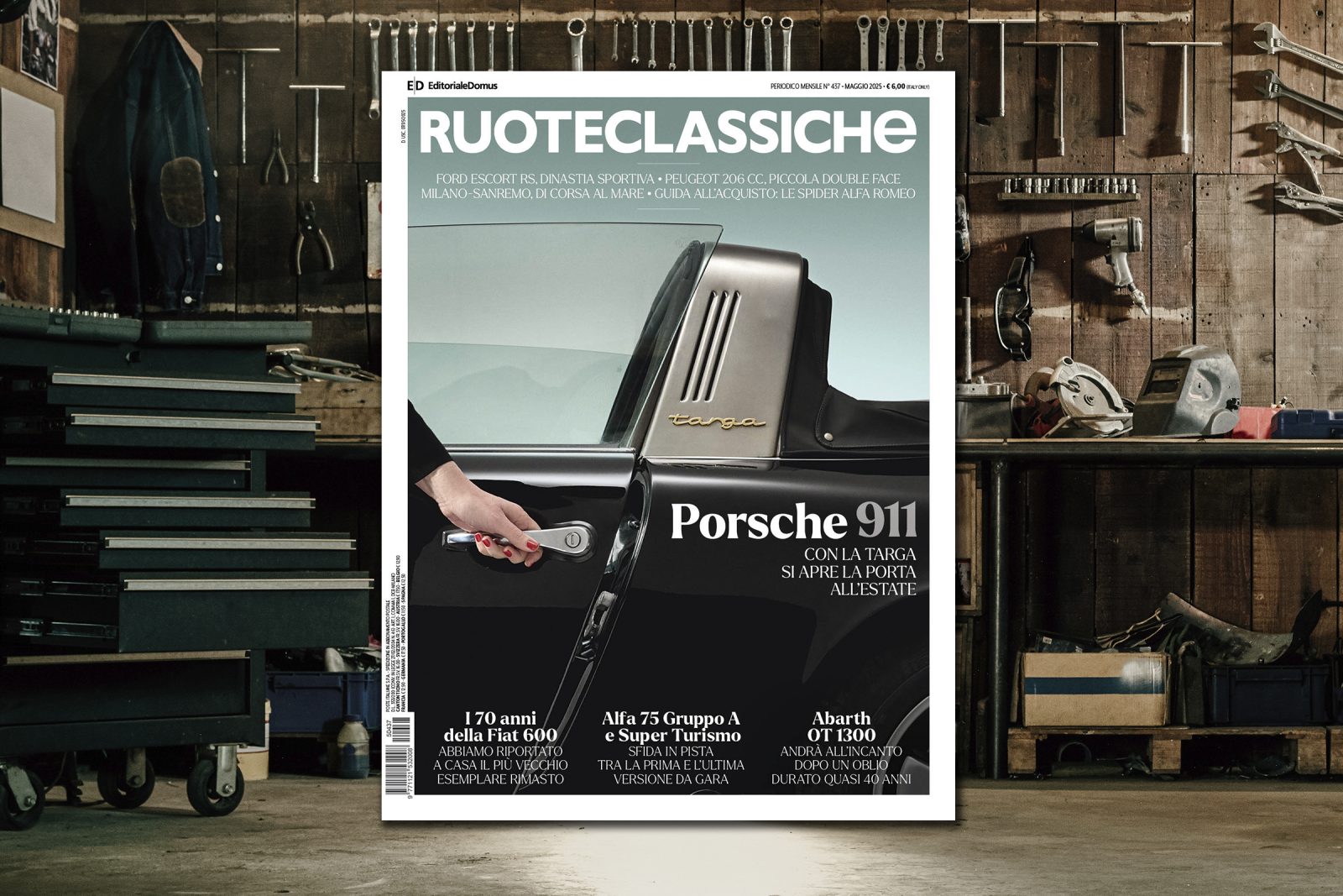 Nel numero di maggio di Ruoteclassiche, oggi in edicola a 6 euro - oppure a 11,90 euro insieme all’allegato Supercar - Le sportive da sogno Lamborghini - troverete, fra l’altro, la prima Porsche 911 Targa, che compie 60 anni, la stupenda settantenne Fiat 600 (abbiamo scovato l’esemplare più datato), un confronto in pista tra le Alfa Romeo 75 da corsa, aspirata e turbo, l’Abarth OT 1300, che torna in vita dopo 40 anni. E ancora, Ford Escort RS, Peugeot 206 CC, tanti eventi – come la “Milano-Sanremo” , e la guida all’acquisto, con le spider del Biscione.