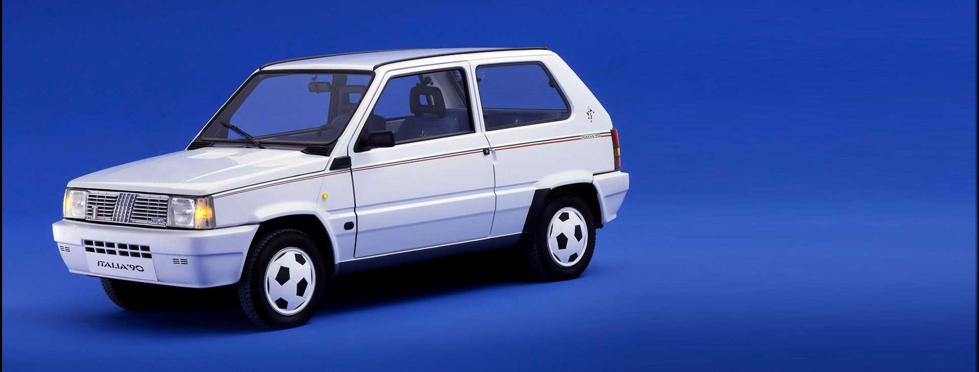 È un pomeriggio assolato di sole quello che, l’8 giugno 1990, saluta i Campionati del mondo di calcio allo stadio di San Siro, a Milano. Dopo mesi di attesa e di budget clamorosamente sforati, le aspettative per l’orgia di pallone sono smisurate. Il pubblico tifa lo sfavorito Camerun, i “Leoni Indomabili” africani lo ripagano alla grande battendo uno a zero l’Argentina di un incazzatissimo Maradona. Sulle note dell’ubiquo inno “Un’estate italiana” composto da Giorgio Moroder, l’ottimismo vola con una folata di gadget. Di ogni genere e gusto purché contrassegnati con Ciao, la mascotte più desolante della storia dei Mondiali. Fra i tanti prodotti, Fiat annuncia una Panda in serie speciale che sembra uscita dalle pagine di “Topolino”. Perché in fondo non sono molte le auto con le ruote disegnate come un pallone da calcio.