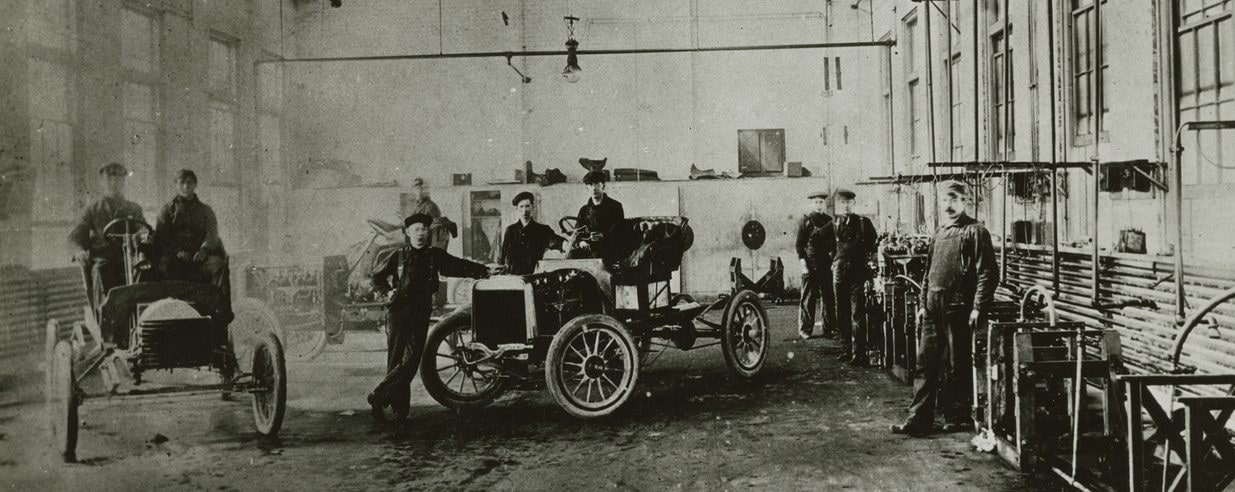Nasce la Ford Motor Company. Ford colse un insperato successo, che lo pose all’attenzione dell’industriale del carbone Alexander Malcomson. Questi gli propose di entrare in affari con lui e insieme fondarono la Ford Motor Company, creata nel 1903 con l’obbiettivo di scendere in campo nel business della produzione automobilistica avvalendosi del supporto di una dozzina di investitori, a cui si unirono ulteriori figure di sostegno. Come, per esempio, i fratelli Dodge, che avrebbero contribuito con la fornitura di motori. Il 23 luglio successivo nacque il primo esemplare della Model A, il modello che inaugurava l’attività della nuova azienda. E A fine anno questa contava già oltre centoventi dipendenti, con un a produzione suddivisa in tre modelli. L’organizzazione della produzione prevedeva l’acquisto della maggior parte dei componenti per la produzione di auto: squadre di meccanici lavoravano organizzati in stazioni di lavoro, assemblando tutte le parti necessarie fino a che la vettura venisse ultimata. Le automobili prodotte dalla Ford Motor Company erano costose, un risultato che piaceva molto agli azionisti ma non a Henry Ford (diventato azionista di maggioranza in seguito al tentativo di Malcomson di iniziare una nuova avventura in proprio; il progetto fallì e fu costretto a cedere tutte le sue partecipazioni in Ford Motor Company), il quale, anzi, nel 1907 attuò una riduzione della produzione, mossa che coincise con il famoso Panico dei Banchieri di quel periodo e che fu, probabilmente, determinante per salvare l’azienda.