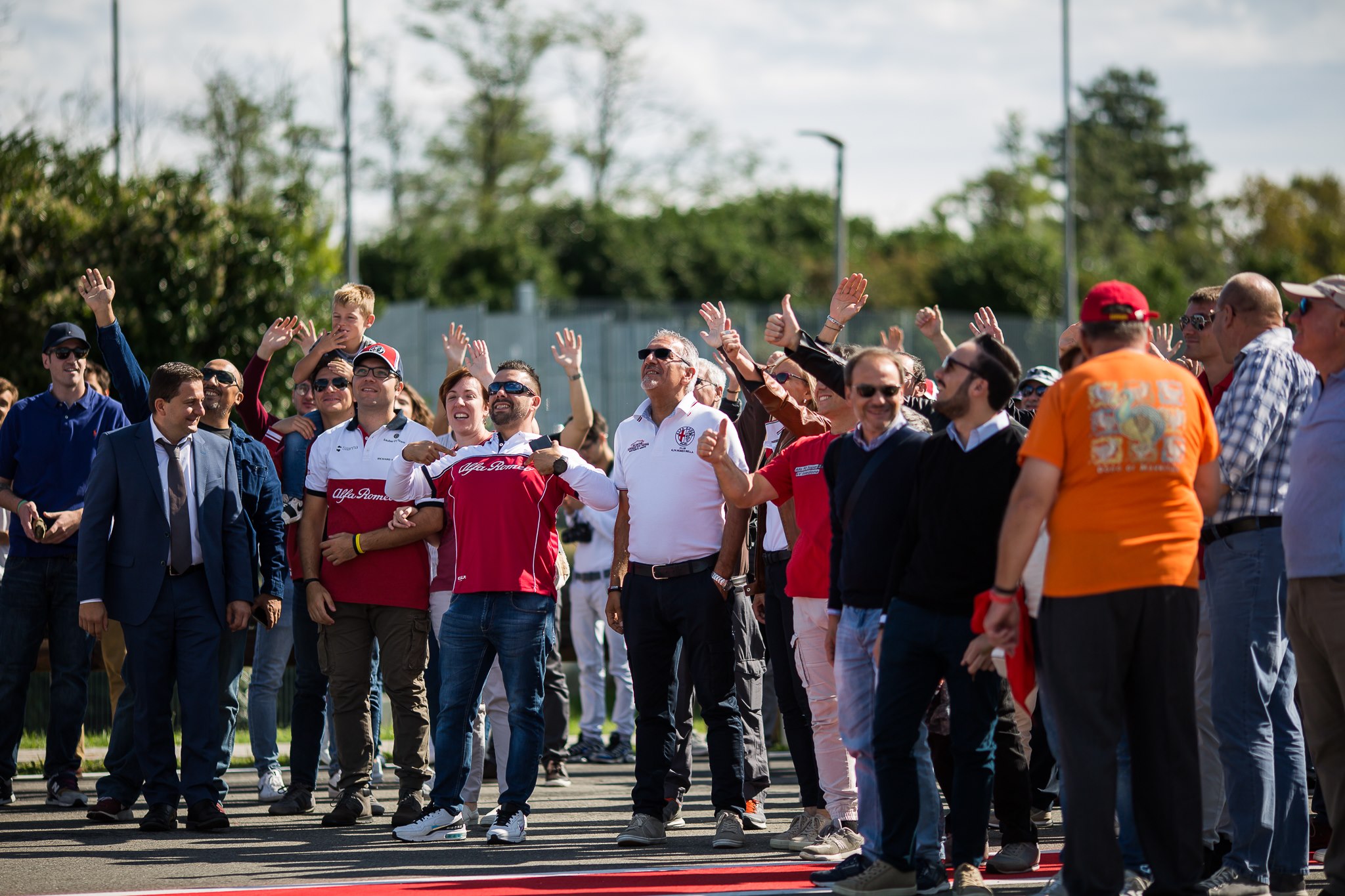 Cheeese! Un colpo d’occhio che solo il volo di un drone poteva catturare e che, nelle ore successive al flash mob e alla gara – che ha visto peraltro il buon ottavo posto di Antonio Giovinazzi –, ha regalato agli alfisti presenti la fotografia di una giornata indimenticabile.