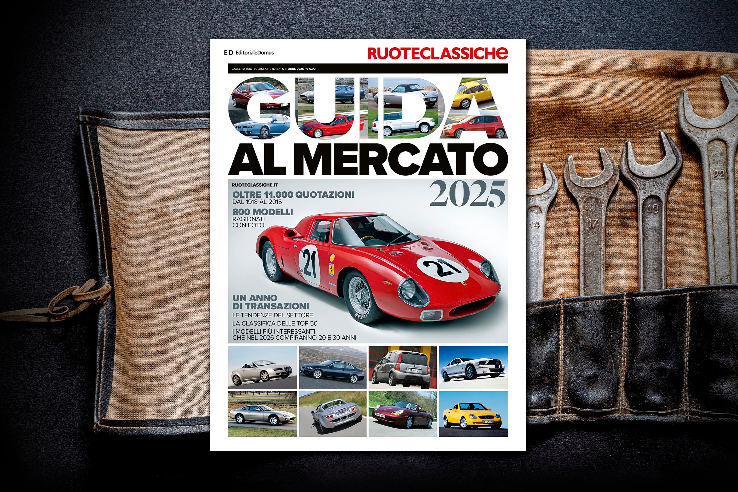 Ma la Guida al mercato non è solo il listino. All’interno troverete numerosi servizi di grande interesse. In primis la Top 50, ovvero la classifica delle 50 vetture che hanno spuntato le cifre di aggiudicazione più alte nelle più importanti aste internazionali. Fra queste, la regina indiscussa è la Ferrari 250 LM del 1964, vincitrice della 24 Ore di Le Mans 1965 con Rindt-Gregory. A questa Rossa abbiamo dedicato un servizio nel quale raccontiamo le sue gesta. E poi la nostra inchiesta: conviene acquistare un esemplare perfetto (la nostra fascia A+), oppure uno in buono stato, ma da migliorare con il tempo (label AB)? Infine un approfondimento su un tema che non mancherà di scatenare non poche polemiche: il futuro collezionistico delle cosiddette restomod, storiche reinterpretate mediante l’impiego di componenti tecnologicamente avanzati.