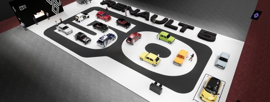 Esposizione in grande stile. L’ampio stand Renault, con area di 820 m² omaggerà in tutto e per tutto la Renault 5: a partire dalla forma che richiama il logo celebrativo di questo 50° anniversario.