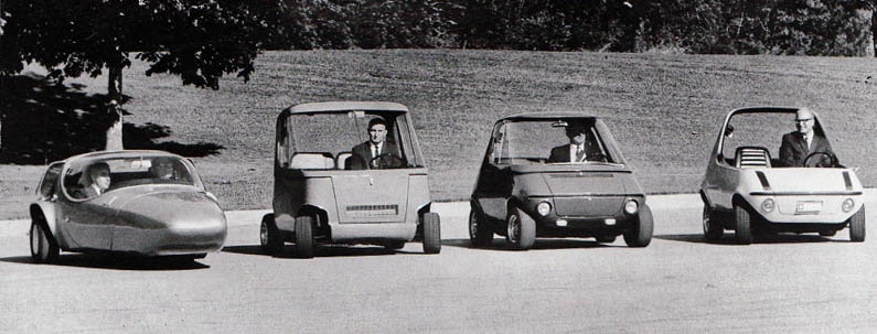 L’invito a firma di Edward Cole, presidente della General Motors, era su cartoncino bianco, breve e convenzionale. Ma il tema della giornata “Il progresso dell’energia“ incuriosiva i giornalisti, ospiti del celebre centro di ricerca a Warren, Michigan, in una giornata di primavera del 1969. Da due anni una nuova legge, l’Air quality act, consentiva al Governo di effettuare ogni tipo di studi sulle emissioni e imporre restrizioni alla circolazione. In California, e in qualche altra metropoli, gli ingorghi di traffico erano già un problema. Ma la benzina costava ancora talmente poco (8 centesimi al litro) - e la nuova rete autostradale era talmente invitante - che immaginare rivoluzioni nel mondo dell’auto riusciva, francamente, difficile. Con questi occhi, e a due mesi dallo sbarco sulla Luna - che invece sembrava aprire grandi orizzonti - la stampa guardò correre nei piazzali della GM una delle prime ibride dell’era moderna. Una “mini-mini car” – così fu battezzata - per piccoli spostamenti urbani.