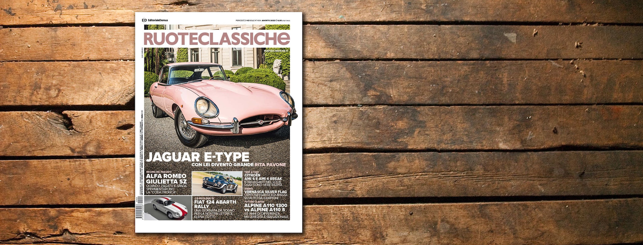 C’è una Jaguar E-Type 4.2 tutta rosa sulla copertina del numero di agosto di Ruoteclassiche in edicola dal 30 luglio (6 euro). Quella Jaguar fu, nel 1966, il regalo di compleanno dei genitori a una già popolarissima Rita Pavone per i suoi 21 anni.