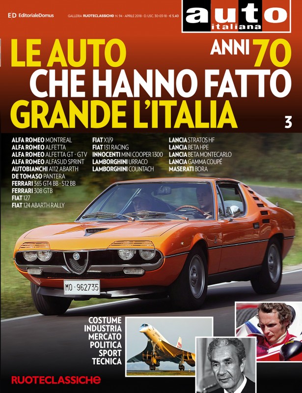 Con il volume in edicola ad aprile, al prezzo di 5,40 euro in più rispetto alla sola rivista, arrivano gli anni 70, terzo uscita della collana “Le auto che hanno fatto grande l’Italia”, che proseguirà fino al mese di luglio. Un decennio segnato - questa volta in positivo - dalla rinascita del Cavallino, che grazie all'austriaco Niki Lauda conquisterà due titoli iridati Piloti, nel 1975 e nel 1977 (e quattro Costruttori). Non da meno saranno le vittorie delle Lancia Fulvia Coupé HF, Lancia Stratos e Fiat 131 Rally Abarth nei rally.
