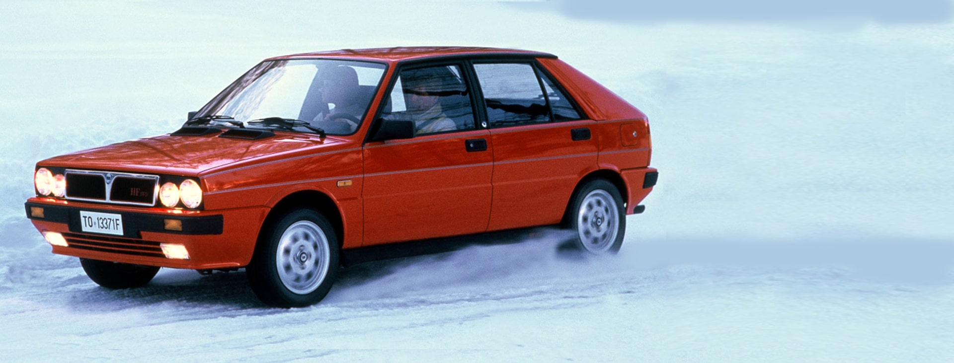 In principio fu la HF 4WD ad inaugurare l’avvento della trazione integrale sulla Lancia Delta. Correva l’anno 1986 e la compatta di Chivasso si era già affermata sul mercato, strizzando l’occhio alla clientela più sportiva con la 1.6 Turbo HF (presentata nel 1984). La 4WD, forte dei suoi tre differenziali aggiungeva un’ottima tenuta strada e un motore più potente: lo stesso due litri da 165 CV dell’ammiraglia Thema I.E. Turbo. Rimase a listino per poco tempo, già nel 1987 debuttò la nuova “Delta Integrale” caratterizzata dai passaruota allargati e da un nuovo 2.0 otto valvole da 181 CV. La 4WD e la sua erede diretta confermarono le qualità della Delta nel motorsport, consentendole di vincere cinque titoli mondiali consecutivi dal 1988 al 1992. Nel 1989 ci fu un ulteriore step evolutivo con la Delta Integrale 16v da 200 CV. Questa, oltre alla distribuzione a quattro valvole per cilindro, beneficiò di una nuova ripartizione della coppia passando dallo schema 56% anteriore e 44% posteriore a 47% anteriore e 53% posteriore.