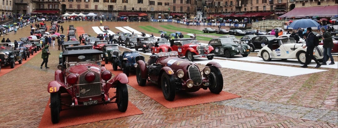 Pioggia, pioggia e ancora pioggia. La terza tappa della 1000 Miglia in queste ore attraversa la Toscana, con i suoi affascinanti paesaggi autunnali. Partite stamattina alle 6.30 da Roma, le auto della Freccia Rossa hanno attraversato sotto una pioggia battente Radicofani e la Val d’Orcia per fermarsi a Siena per il pranzo di gara. Breve pausa nella suggestiva piazza del Palio, arredata con un enorme tricolore al posto del consueto tappeto erboso degli ultimi anni, e poi via di nuovo al volante verso Lucca e quindi Viareggio. I piloti entreranno in Emilia Romagna attraverso il passo della Cisa per raggiungere Parma, Capitale italiana della Cultura 2020+21. Arrivo previsto delle prime auto alle 21.30.