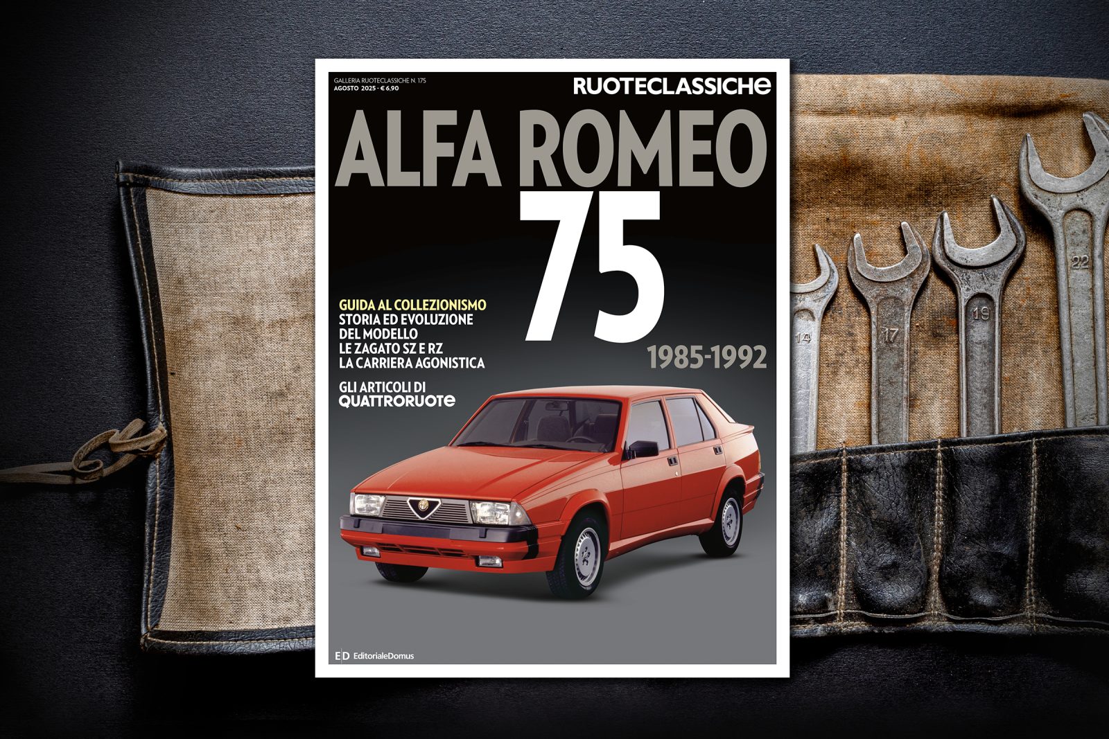 Con Ruoteclassiche di agosto la collana Guida al collezionismo si arricchisce di un nuovo volume, dedicato all’Alfa Romeo Alfa 75, che compie quarant’anni. Lo troverete in edicola al prezzo complessivo (rivista + allegato) di 12,90 euro.