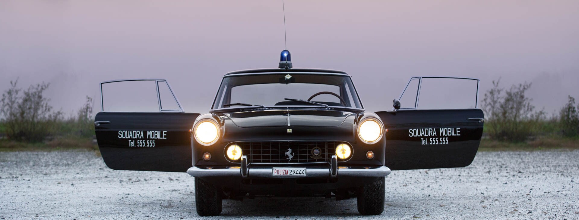 È sicuramente una delle Ferrari più famose di sempre. Magari non la più costosa, ma leggendaria certamente sì. È la 250 GT 2+2 del 1962 appartenuta alla Polizia di Stato e in servizio presso la questura di Roma dal 1963 al 1968. La più efficace arma delle Forze dell’Ordine per contrastare la criminalità negli anni Sessanta, quando le Volanti erano le pur efficaci Alfa Romeo Giulia e al servizio dello Stato c’era pure qualche 2600 Sprint. Condotta dal mitico maresciallo siracusano Armando Spatafora, che aveva frequentato un corso di guida veloce a Vallelunga che lo aveva iniziato ai segreti delle magie al volante, con l’ausilio dei collaudatori della Ferrari, divenne leggendaria per gli inseguimenti alla mala e per le spettacolari carambole nelle strade della Città Eterna, ma anche per per le emergenze sanitarie tra Roma e Napoli (tratta percorsa in meno di 50 minuti, meno dell’attuale treno Frecciarossa).