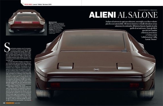 Audace ed estrema in ogni sua soluzione, la Lancia "Sibilo" assomiglia a un disco volante più che a un'automobile. All'esterno lamiera e cristalli si fondono senza soluzione di continuità. All'interno il posto guida ricorda quello di un'astronave. Sono gli effetti speciali che Gandini e Bertone presentano nel 1978 al Salone di Torino, con la "collaborazione" della Lancia "Stratos".