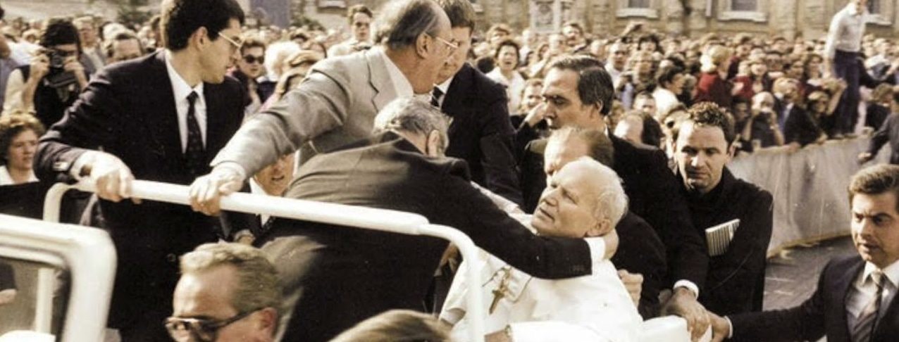 Anche l’Italia ha avuto la sua Dallas, con un esito fortunatamente meno tragico. Era il 13 maggio 1981, quando Papa Wojtyla fu colpito mentre anche lui attraversava la folla festante su un’automobile scoperta. E anche molti di noi, a quarant’anni di distanza, ricordano perfettamente il momento in cui appresero i fatti. La televisione, in diciotto anni, aveva fatto passi da gigante, ma il modo in cui il TG1 della RAI informò il mondo con un’edizione straordinaria alle 17.35 fu assolutamente “radiofonico”: una sola foto del papa sorridente e il povero Roberto Valentini, pretesco come non mai, che marcava i sospiri o forse era davvero sconvolto. Si disse che il Santo Padre viaggiava su una “piccola vettura” scoperta o “una macchina bianca” e che ignoti avevano sparato ferendolo per certo, non si sapeva quanto gravemente. Poi le notizie arrivarono, ma non le immagini del crimine, che giunsero grazie a una troupe della tv tedesca che girava un documentario.