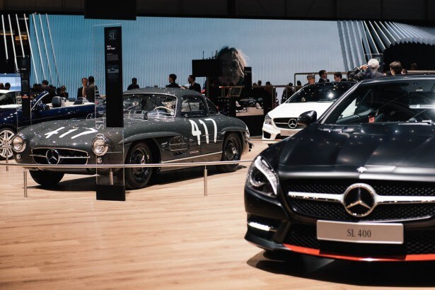 Imperdibile ed emozionante la presenza nello stand TAG Heuer della McLaren MP4/4 del 1988 guidata da Ayrton Senna, che si può osservare e toccare come raramente accade; oppure della Mercedes 300 SL Mille Miglia del 1955 con il numero 417, che coprì i 1600 chilometri e passa della gara più bella del mondo in 11 ore e 29 minuti, con alla guida John Fitch. Quest’ultima fa bella mostra di sé allo stand Mercedes a fianco della 400 SL Mille Miglia appena presentata, un allestimento della SL che vuole celebrare la mitica progenitrice.