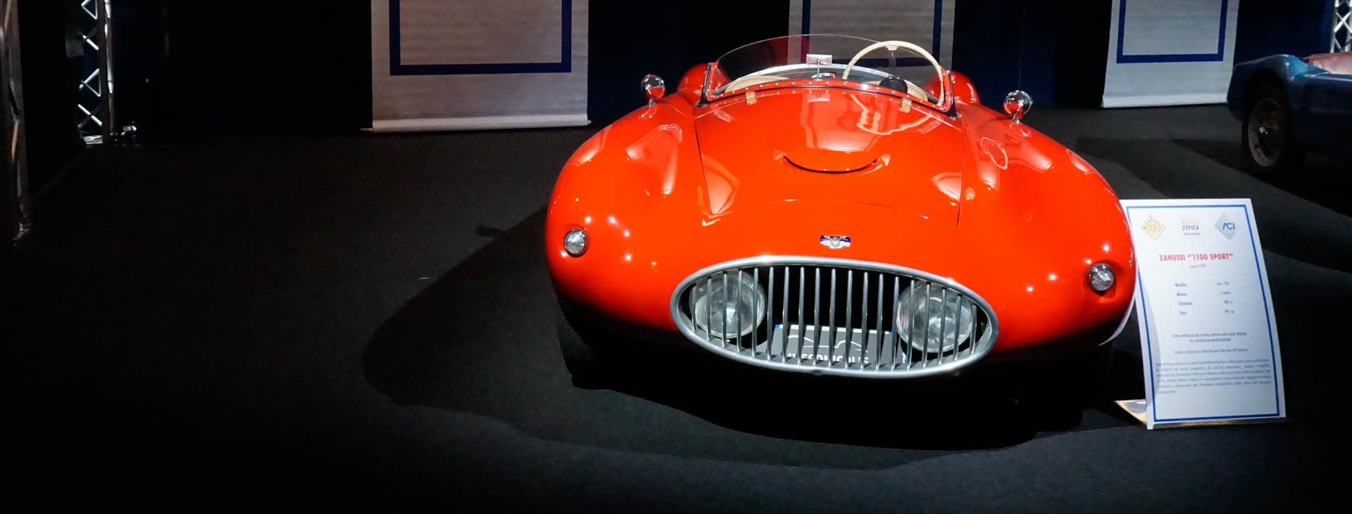 Piccole grandi fuorsierie. Di fronte a questi bolidi da competizione, altri 5 gioielli della creatività italiana: una Stanguellini 750 Sport Internazionale del 1958, nata a Modena dall’abilità di Vittorio Stanguellini e in grado di imporsi in gara contro modelli di marchi ben più affermati; una Osca MT4 del 1954, nata dal genio dei fratelli Maserati dopo la cessione dell’omonima azienda. L’esemplare esposto è arrivato secondo di classe alla Mille Miglia del 1955. Chiudono la galleria tre auto del Museo Nicolis, precisamente la Fiat 1100 E Vistotal del 1950 carrozzata da Castagna con parabrezza senza montanti e volante e pomelleria trasparenti; la Fiat 500 Spider Sport del 1949, anch’essa esemplare unico, allestita da Colli di Milano sulla base della Fiat “Topolino” con tecnologie aeronautiche; la Fiat 1100 Sport Zanussi del 1949, altra one off che durante la sua carriera sportiva montò, come d’uso all’epoca, differenti motori per rimanere competitiva il più a lungo possibile.