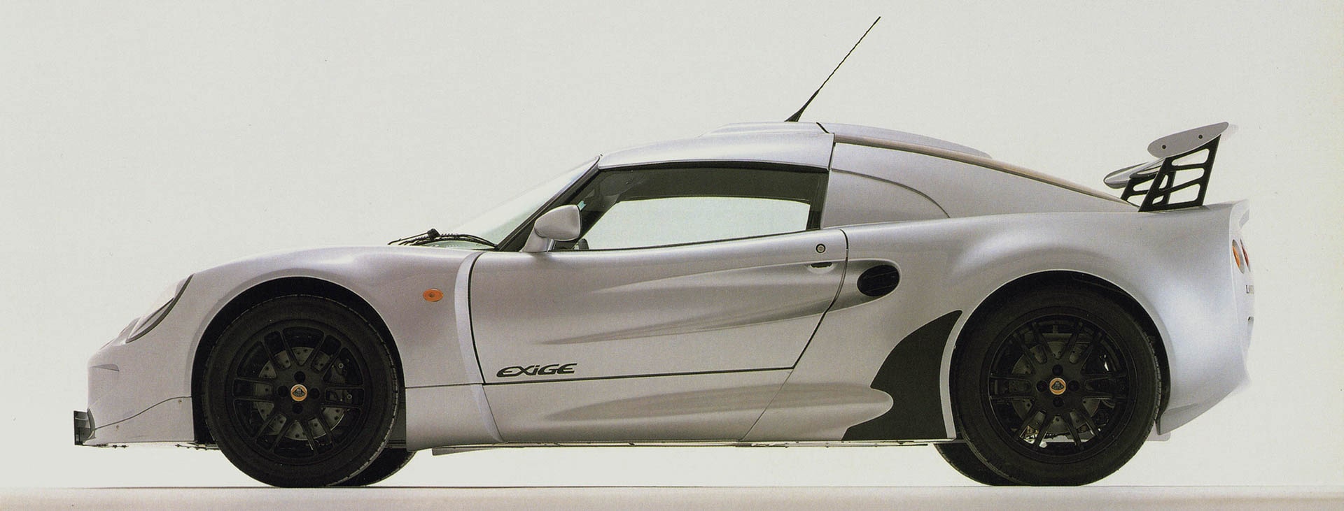 Corsaiola. La Lotus Exige si configurava come la versione coupé ad alte prestazioni della Elise roadster: in relatà non è la prima variante "chiusa" della Elise, in quanto esisteva una Elise dotata di hardtop fisso pensata esclusivamente per le corse e prodotta a partire dal 1996, chiamata Sport Elise; la Exige, invece, era omologata per la circolazione su strada. Esattamente come le Elise, le prime Lotus Exige sono equipaggiate con i motori MG Rover da 1.8l aspirati“Serie K” VHPD (Very High Performance Derivative), in questo caso da 177 cv, mentre nella versione da pista, la potenza sale a 193 cv. La Lotus Exige ostenta con fierezza la sua origine corsaiola: a differenza della Elise, troviamo infatti un grande spoiler posteriore che ne ottimizza l’aerodinamica generando 80 kg di spinta verso il basso a 160 km/h. Il peso è ripartito in una percentuale 40-60 tra anteriore e posteriore, con le masse principali raccolte vicino al baricentro al fine di ridurre al minimo il momento d'inerzia, aumentando così la maneggevolezza. Un'altra fra le peculiarità tecniche della prima Lotus Exige "S1” (anche in questo caso ripresa dalla Elise), riguarda gli speciali freni a matrice metallica composita (MMC) in alluminio speciale al carburo di silicio, realizzati dall’americana Lanxide Corp che garantivano un'efficacia formidabile e un “peso piuma”, in linea con lo spirito dell'auto. Questa soluzione verrà abbandonata sulla seconda serie, in favore di dischi convenzionali... La Exige si rivolge quindi a un target molto più “tecnico” della sorella Elise, in quanto è dedicata espressamente a chi intende usare spesso l’auto in pista. La prima serie della Lotus Exige è stata prodotta tra il 2000 e il 2001 in 604 di esemplari.