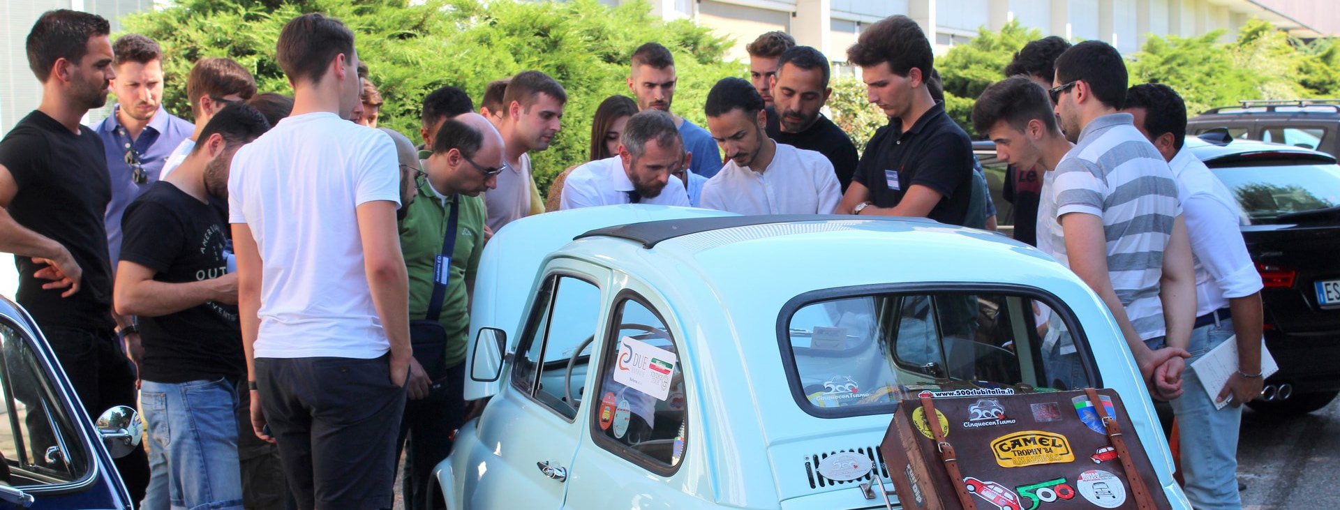 Ad accogliere i 26 studenti del terzo Master Restauratori Auto d'Epoca, nella giornata inaugurale di ieri, due Fiat 500 d'epoca. Esaminate con attenzione insieme a due esperti del modello
