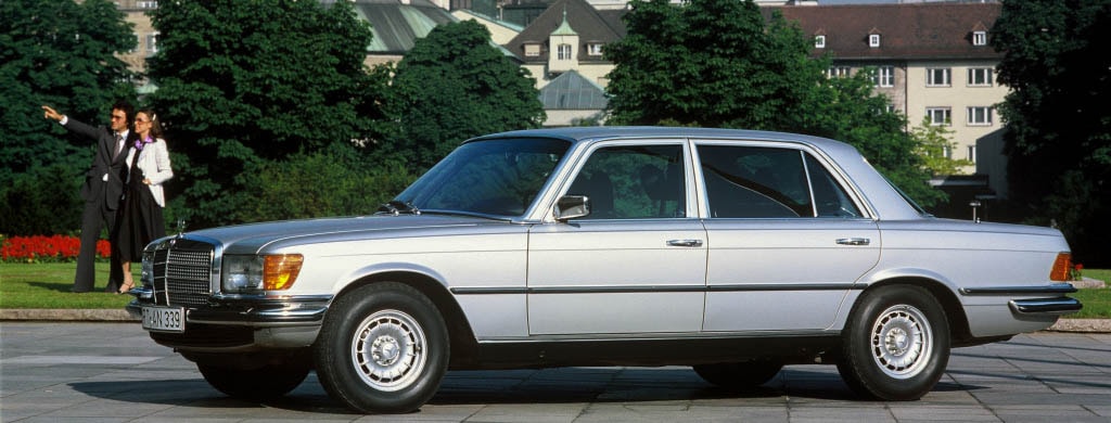 Barocco e modernismo. Impugnando le maniglie in metallo cromato si ha un’idea della consistenza "teutonica" di quest’auto. All’interno le ampie poltrone con i raffinati rivestimenti in velluto sono corredate da poggiatesta concavi (tutto di serie nel caso della 6.9) tipicamente anni ’70, un elemento fortemente distintivo dei modelli Mercedes di fascia più alta in quel periodo. La W116 alterna sapientemente barocchismi, come cromature ed elementi in rilievo non integrati nella carrozzeria, e avanguardia: sia nella tecnica, per quanto concerne la sicurezza, che nello studio del layout interno. All’opulenza delle finiture nell’abitacolo, si contrappone la semplicità e la linearità della console centrale, dominata dai due comandi circolari sovrapposti e le levette per la climatizzazione.