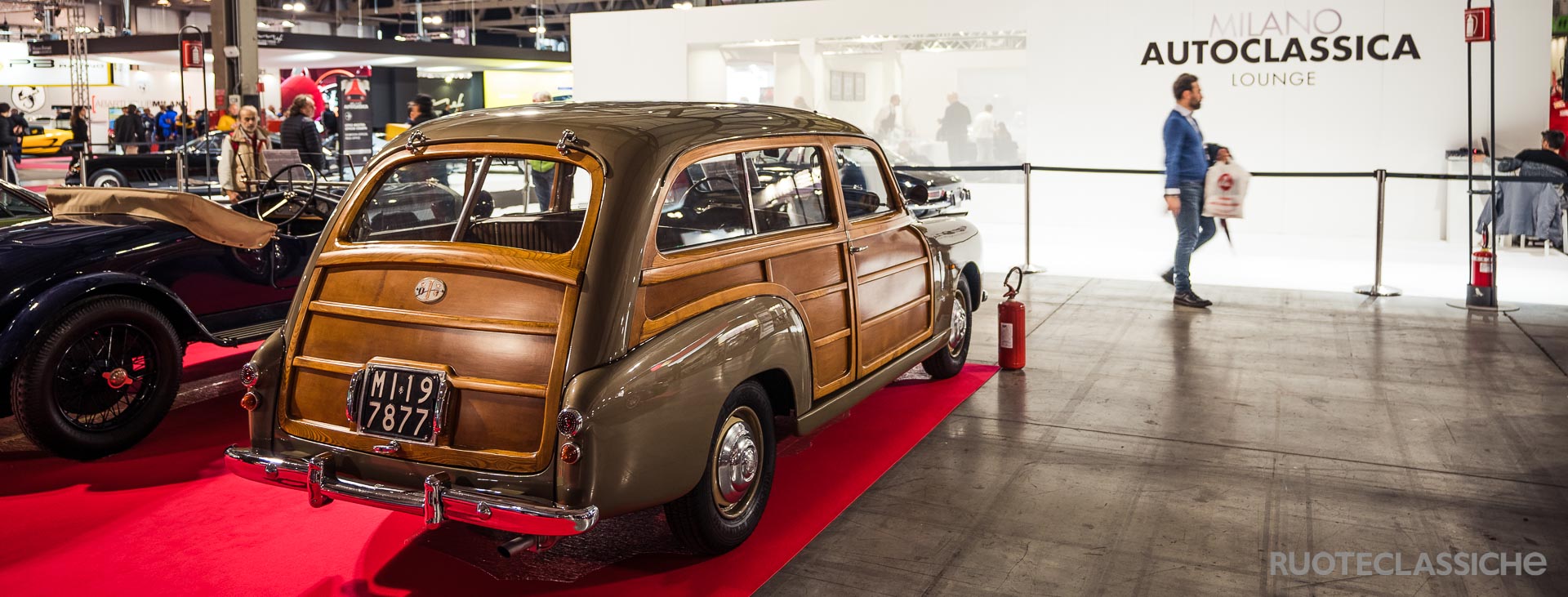 Fiat 1400 Giardiniera Viotti (1951). Lo stand di Auto Classic ha in bella mostra un'altra giardinetta Fiat incredibilmente elegante: si tratta di una one-off su base 1400 carrozzata da Viotti per il Salone di Ginevra del 1951. L'esemplare unico è in condizioni eccellenti, ma... ma è già stato venduto. A dimostrazione del fatto che si trattava di un pezzo eccezionale.