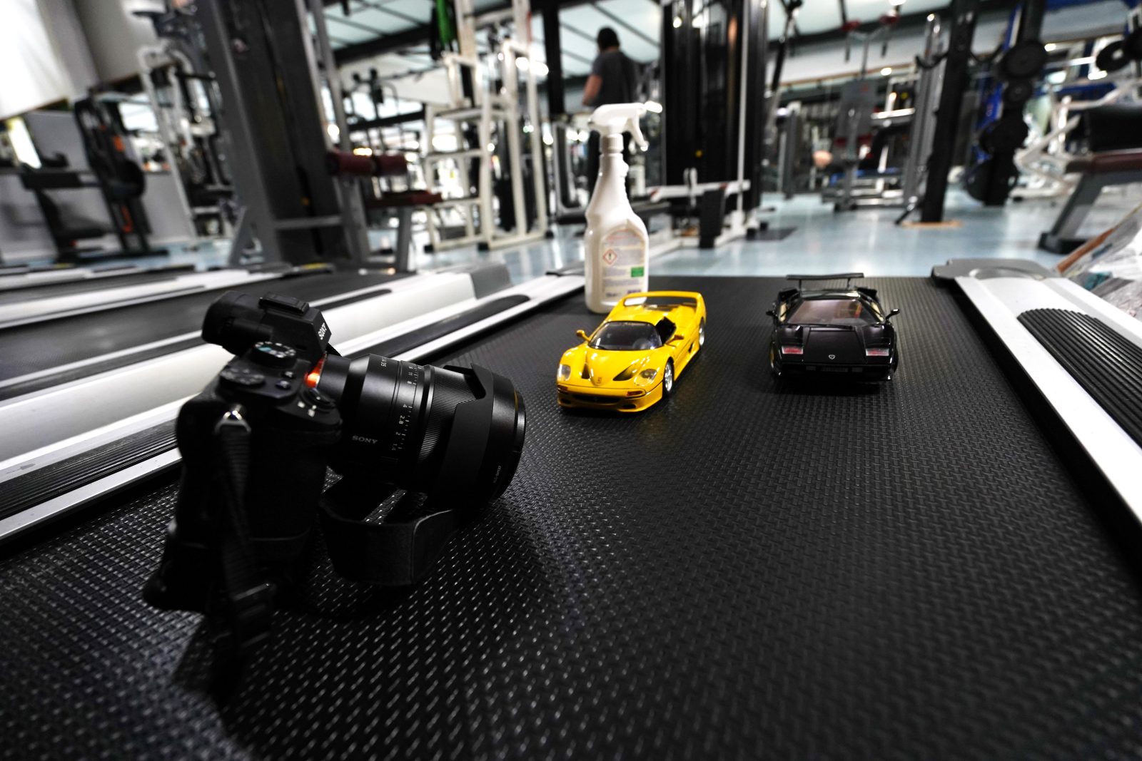Immortalare la “sfida”. Consegniamo a Fabrizio due modelli: una Lamborghini Countach e una Ferrari F50, ideali per realizzare un testa a testa stradale sotto la pioggia battente. Ecco che cosa serve per il nostro set: 1 Sony a7III (mirrorless) con ottica da 35 mm; 1 cavalletto fotografico; 1 tapis roulant al minimo della sua velocità; 2 fili da pesca; 1 spruzzino domestico riempito d'acqua; 2 piccole luci a Led.