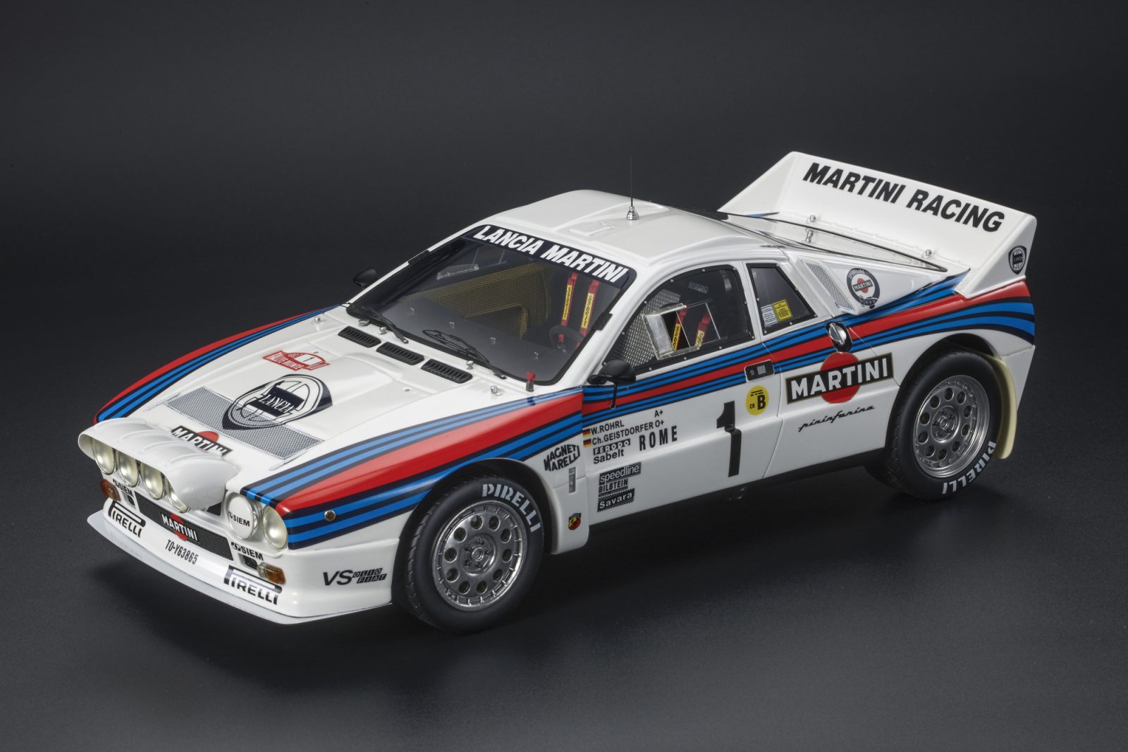Offerta ampia. Sono diverse le versioni in arrivo (previste per la fine dell’estate), tutte con livrea Martini, a partire dalla riproduzione della vincitrice del Rallye di Montecarlo 1983 guidata dal tedesco Walter Röhrl, o da quella che ha trionfato al Tour de Corse con il finlandese Markku Alén, con i fari supplementari montati anche sulla versione “Sanremo 1983”. Il prezzo del modello è di 419,95 euro, buono considerando scala, dettaglio e finiture.