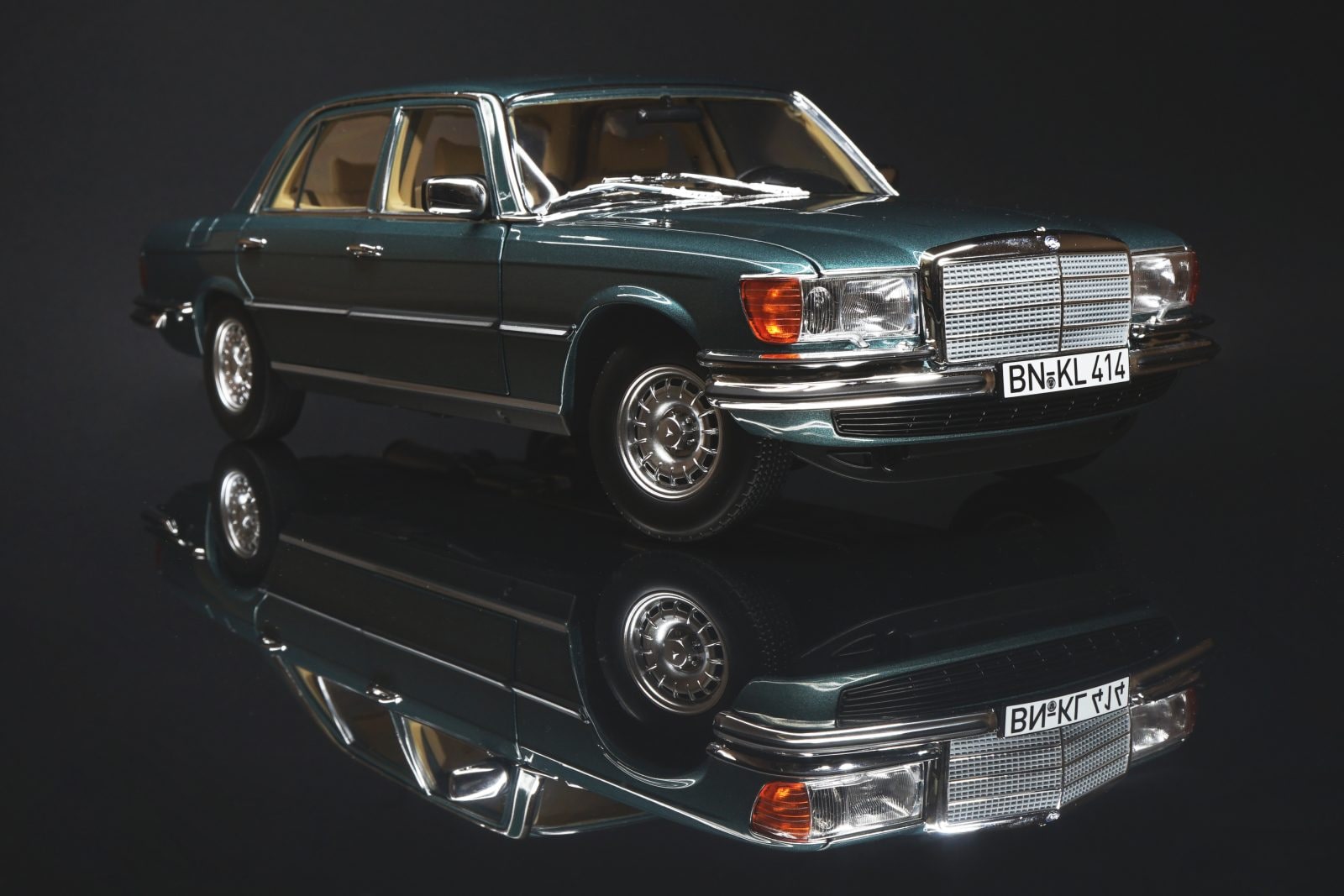 La riproduzione in scala 1:18 della Norev di questa Mercedes-Benz 450 SEL 6.9 accontenta in pieno i collezionisti delle “apribili”, con ben sei aperture: cofano motore, quattro portiere e baule. Si tratta un modello di fascia media in metallo e il colore scelto - un verde petrolio che potrete apprezzare nella gallery - vale buona parte del prezzo (129 euro) con il quale il modello si può acquistare sul mercato.