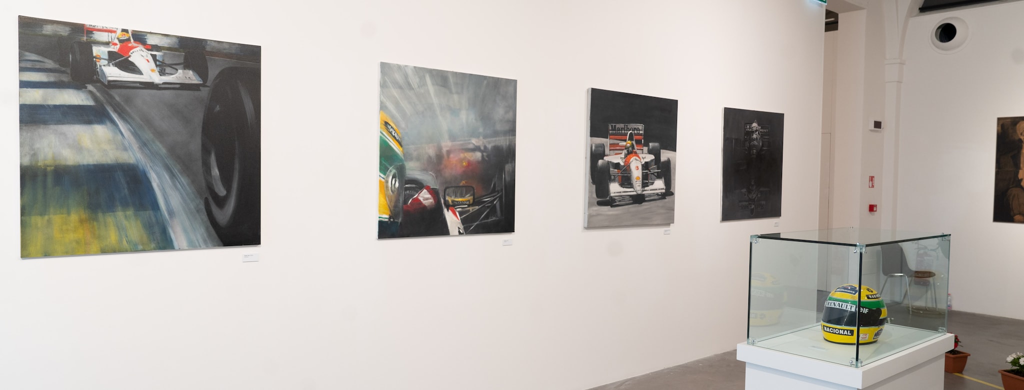 Emozioni uniche. Le auto ritratte in movimento hanno una vivacità e una dinamicità notevole, indubbiamente fuori dal comune. Al contempo i volti dei personaggi sembrano istantanee, dove emergono nitidamente gli stati d’animo. Indipendentemente dal soggetto prendetevi qualche minuto di contemplazione, lasciando la possibilità di farvi toccare nelle corde più profonde del vostro animo. Potete farlo osservando (ovviamente) Senna, oppure Tazio Nuvolari, Piero Ferrari, Ferruccio Lamborghini, l’ing. Forghieri, Jim Clark, oppure vetture impegnate in gara. Una vera “chicca” è rappresentata da “Camera car Gilles Monaco”: non vi anticipiamo niente, ma siamo certi che noterete qualcosa di magico. A corollario delle opere esposte pregiati cimeli, provenienti dalla collezione privata di Jonathan Giacobazzi.