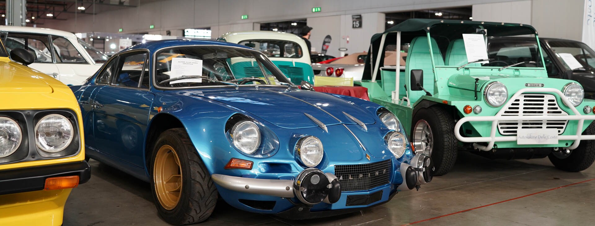 Alpine A110 1600S Gr.4. La sportiva francese ha segnato alcune delle pagine più belle del motorismo. A Milano Autoclassica, presso lo stand dell’Autosalone Delle Coste fa bella mostra di sé un esemplare del Gruppo 4 nell’intramontabile livrea blu metallizzato con cerchi “Campagnolo” color oro. L’auto, da sempre italiana, è stata restaurata ed accompagnata da un palmarès certificato. Per lei, il cartellino è di 155.000 euro