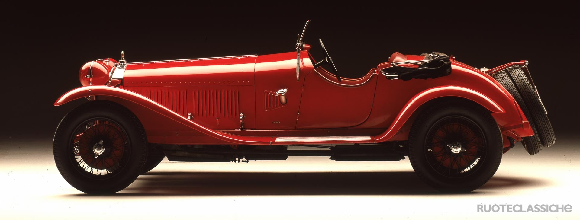 Alfa Romeo 6C 1750GS (1930). Il modello più antico è una preziosa Alfa Romeo 6C 1750 Gran Sport del 1930, l’icona della Mille Miglia che si aggiudicò nel 1930 con Nuvolari e Guidotti, superando per la per la prima volta la media dei 100 km/h. Sotto il cofano, un sei cilindri bialbero di 1752 cm3.