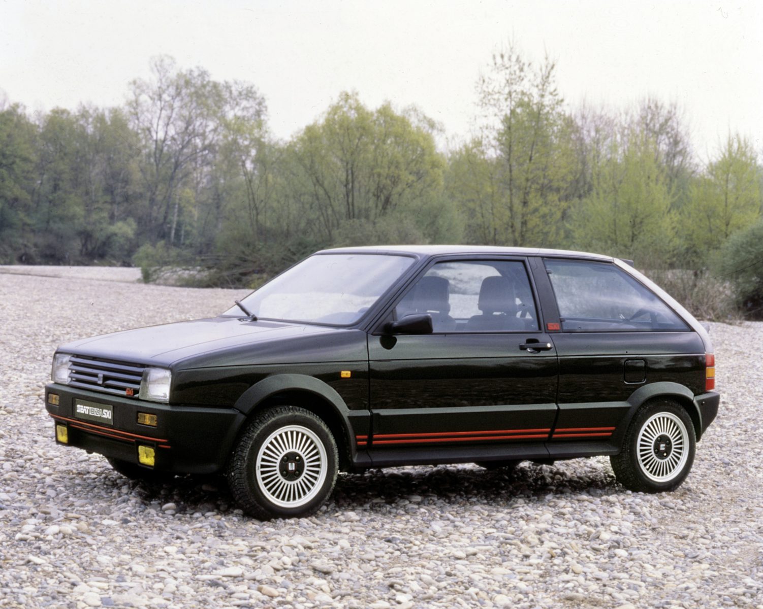Con un design firmato Giugiaro (si dice pensato per la Golf di seconda generazione e rifiutato da Volkswagen) che ricorda anche la Fiat Uno, il telaio basato sulla vecchia Ritmo e motori “made in Germany”, la Seat Ibiza entra nell’arena delle utilitarie sprintose, scegliendo in realtà delle dimensioni che la collocavano a metà strada con una “media” dell’epoca. Con 3,64 metri, infatti, la spagnola offriva una buona abitabilità, ma per essere competitiva con le altre piccole bombe coeveera ben altro quello che doveva sfoggiare.
