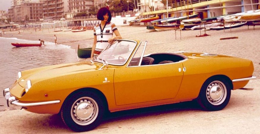 Fiat 850 Spider, alla portata di tutti. Decisamente più familiare è l’aspetto della Fiat 850 Spider, soprattutto perché si tratta di un modello di serie e non di un esemplare unico. Sebbene, a ben vedere, anch’esso, stilisticamente parlando, non abbia nulla in comune con la berlina dalla quale è derivato. Disegnata probabilmente in contemporanea con la 911 Spyder, la 850 Spider mostra un trattamento differente del frontale, caratterizzato dai fari inclinati ed evidentemente ispirato a quello della dream car Bertone Testudo del 1963. Diversa è anche la soluzione adottata per la fanaleria posteriore, che risulta più consona a una produzione in serie, oltre che al rispetto del Codice della Strada. Il modellato della carrozzeria, con le creste dei parafanghi anteriori svettanti e la caratteristica coda rialzata, è praticamente identico, fatte le debite proporzioni. Proposta alla Fiat dallo stesso Bertone, questa graziosa spider, che vanta un abitacolo di tono sportivo, con sedili ribassati e plancia con inserti in finto legno, viene subito accettata, in un periodo di grande espansione per la Casa torinese, che punta a una proporre una gamma completa e senza troppe limitazioni stilistiche, soprattutto per quanto riguarda i modelli più sportivi. L’aspetto sarà probabilmente il fattore che più determinerà il successo della Fiat 850 Spider.