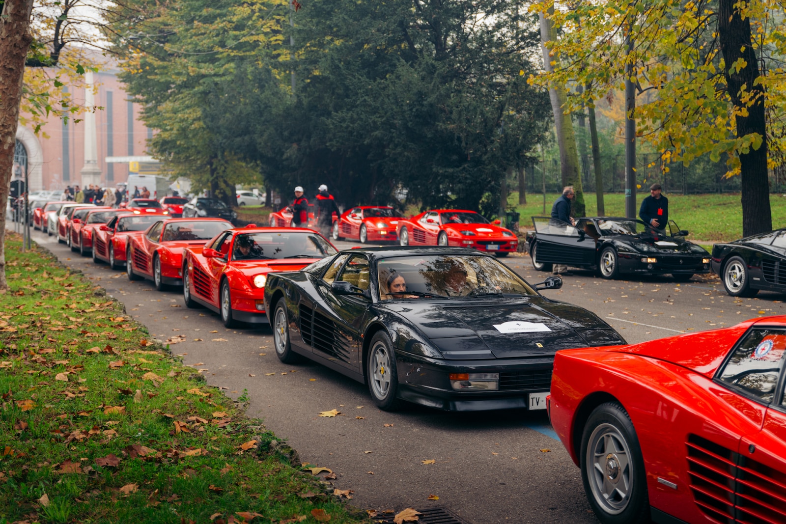 Sotto la Madonnina. Il momento clou delle celebrazioni è stato senza dubbio la parata di sabato 16 novembre che ha visto protagoniste oltre 30 Ferrari Testarossa, tra cui alcune 512 TR e F512 M, provenienti da tutta Europa. L’evento ha preso il via dalla prestigiosa sede dell’Automobile Club di Milano; il convoglio prevalentemente rosso (anche se non sono mancate le varianti di colore meno comuni) ha attraversato alcune delle zone più iconiche del capoluogo lombardo, un percorso emozionante per i proprietari intervenuti e una ghiotta sorpresa per gli appassionati e i curiosi incontrati lungo la strada, testimoni di uno spettacolo più unico che raro. Dopo una tappa all’Ippodromo di San Siro il corteo ha raggiunto il quartiere di Fieramilano-Rho per un’esposizione trionfale all’ingresso di Milano AutoClassica, dando l’opportunità di mettere in risalto la bellezza senza tempo di queste vetture, celebrando non solo il passato, ma anche la vitalità e l’eredità del marchio Ferrari così come tramandata ancora ai giorni nostri.