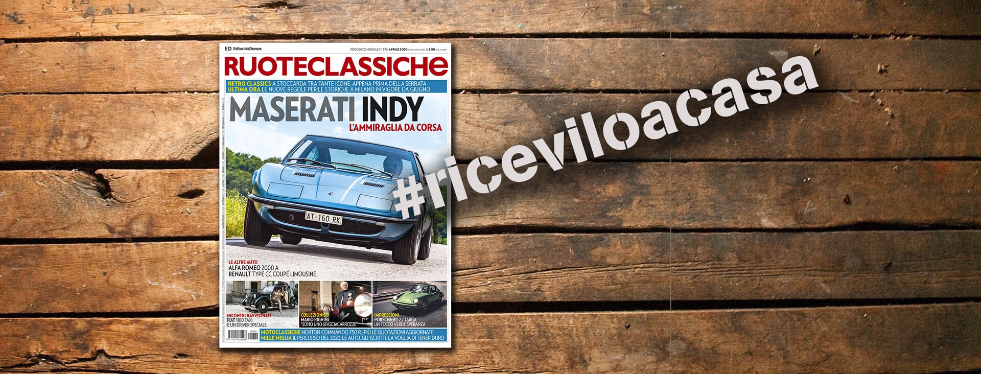 La promozione. Ruoteclassiche aderisce alla campagna promozionale #riceviloacasa, che coinvolge tutte le testate Editoriale Domus. La nuova offerta #riceviloacasa prevede l’abbonamento a Ruoteclassiche per 3 mesi, proposti a soli 11,90 € più spese di spedizione (0,90 €). Ma c’è di più! Perché aderendo all’iniziativa avrete accesso anche all’edizione digitale della rivista.
