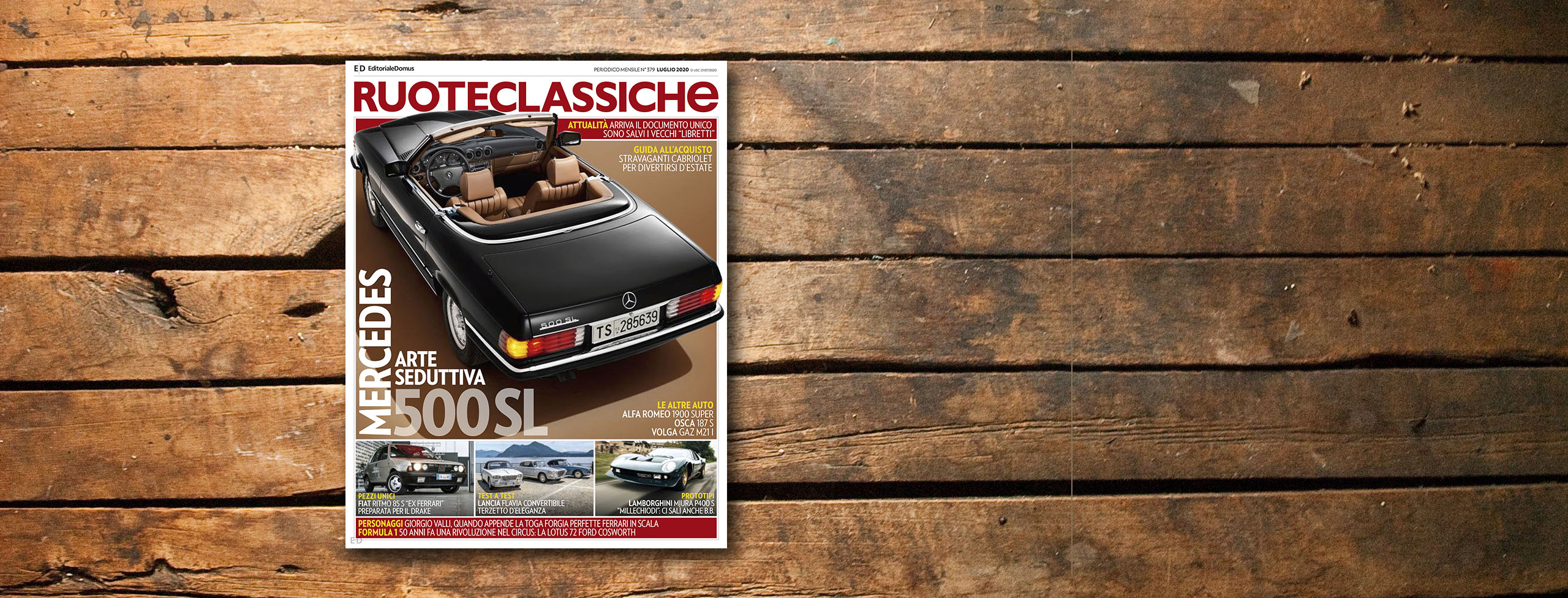 Su Ruoteclassiche di luglio 2020, la Mercedes-Benz 500 SL, la Ritmo del “Drake”, la Miura “Millechiodi”, la monoposto Lotus 72 Ford Cosworth e molto altro…