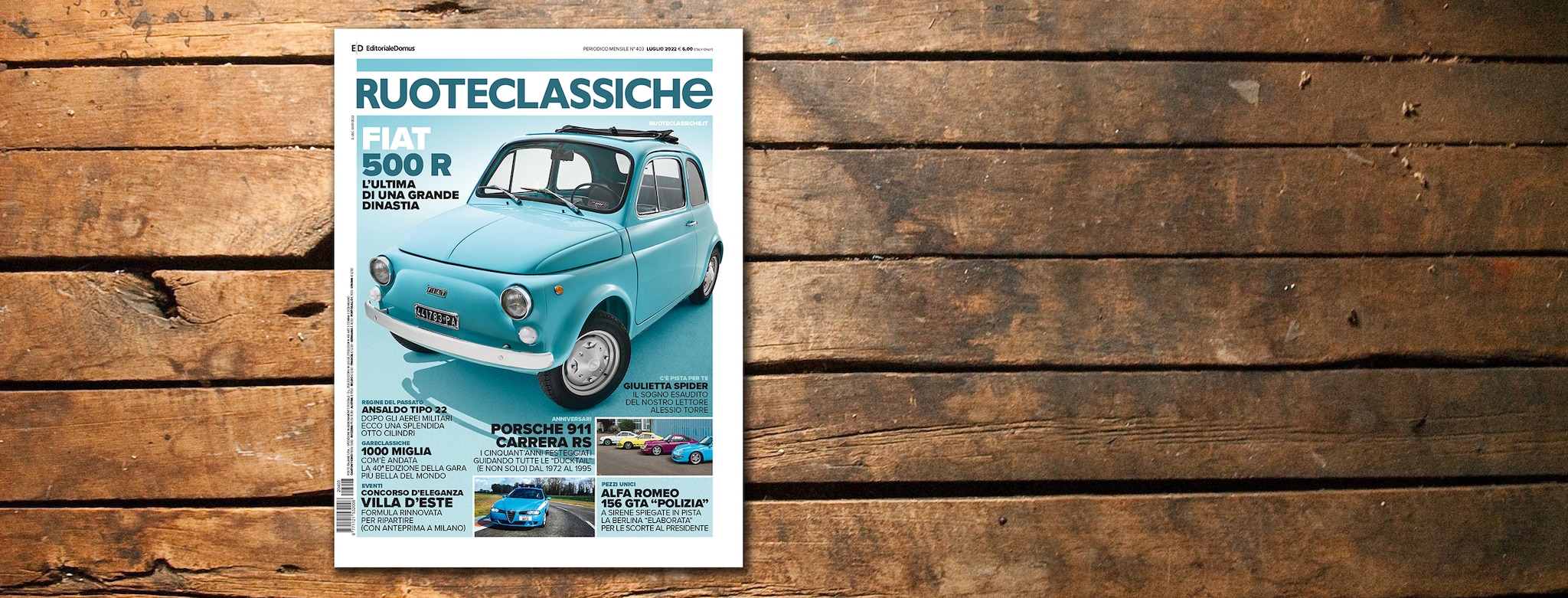 Dal primo luglio 2022 è in edicola il numero 403 di Ruoteclassiche (6 euro). In copertina una splendida Fiat 500 R color Turchese Farfalla, l’ultimo esemplare uscito dagli stabilimenti Fiat di Termini Imerese il 31 luglio 1975