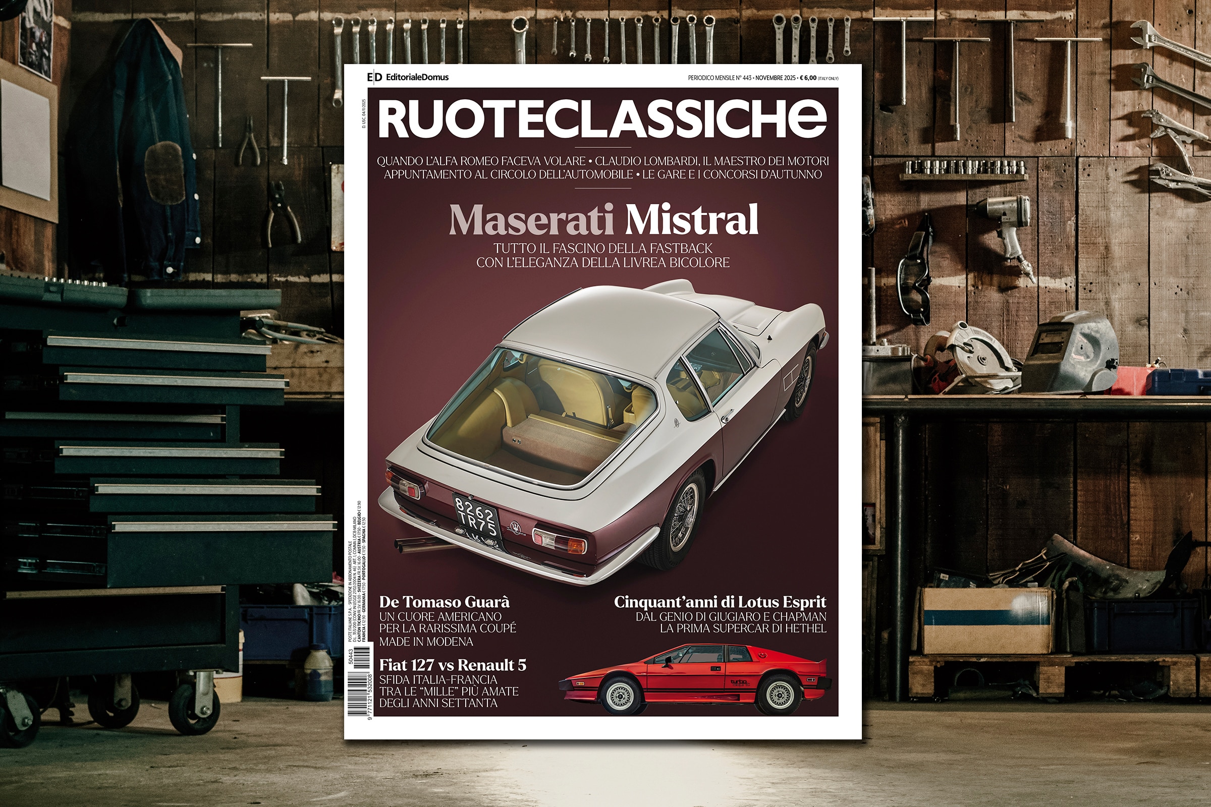 Su Ruoteclassiche di novembre trovate la regina Maserati Mistral 4.000, la 50enne Lotus Esprit, con Giorgetto Giugiaro che spiega come l’ha disegnata, la De Tomaso Guarà Coupé, il Test a test tra la Fiat 127 e la Renault 5, e un servizio speciale: il biplano Caproni Ca.100, addestratore degli anni 30, con motore Colombo/Alfa Romeo. Vi diciamo tutto poi del nostro Circolo dell’Automobile a Vairano, e ricordiamo due grandi personaggi del mondo delle corse scomparsi di recente, Enzo Osella e Claudio Lombardi. Quindi lo Specialista di questo mese, i grandi eventi e molto altro ancora.